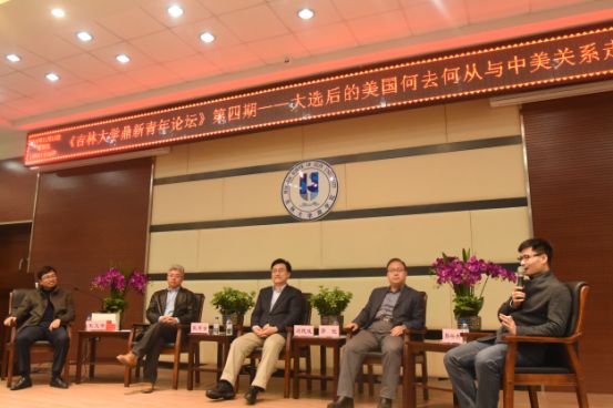 11月11日晚6:30,第四期HAHA体育鼎新青年论坛在东荣大厦B310报告厅隆重举行。本次论坛由校团委青年文化书院联合公司团委共同举办。本次论坛的主题是:“大选后的美国将何去何从?中美关系的未来将如何走势?”论坛邀请了董事长助理兼哈哈体育经理、教授、博士生导师刘德斌,东北亚研究院国际政治所教授、博士生导师张景全,行政公司国际政治系教授、博士生导师郭锐以及哈哈体育副教授孙兴杰等作为主讲嘉宾。由哈哈体育副教授王文奇主持。