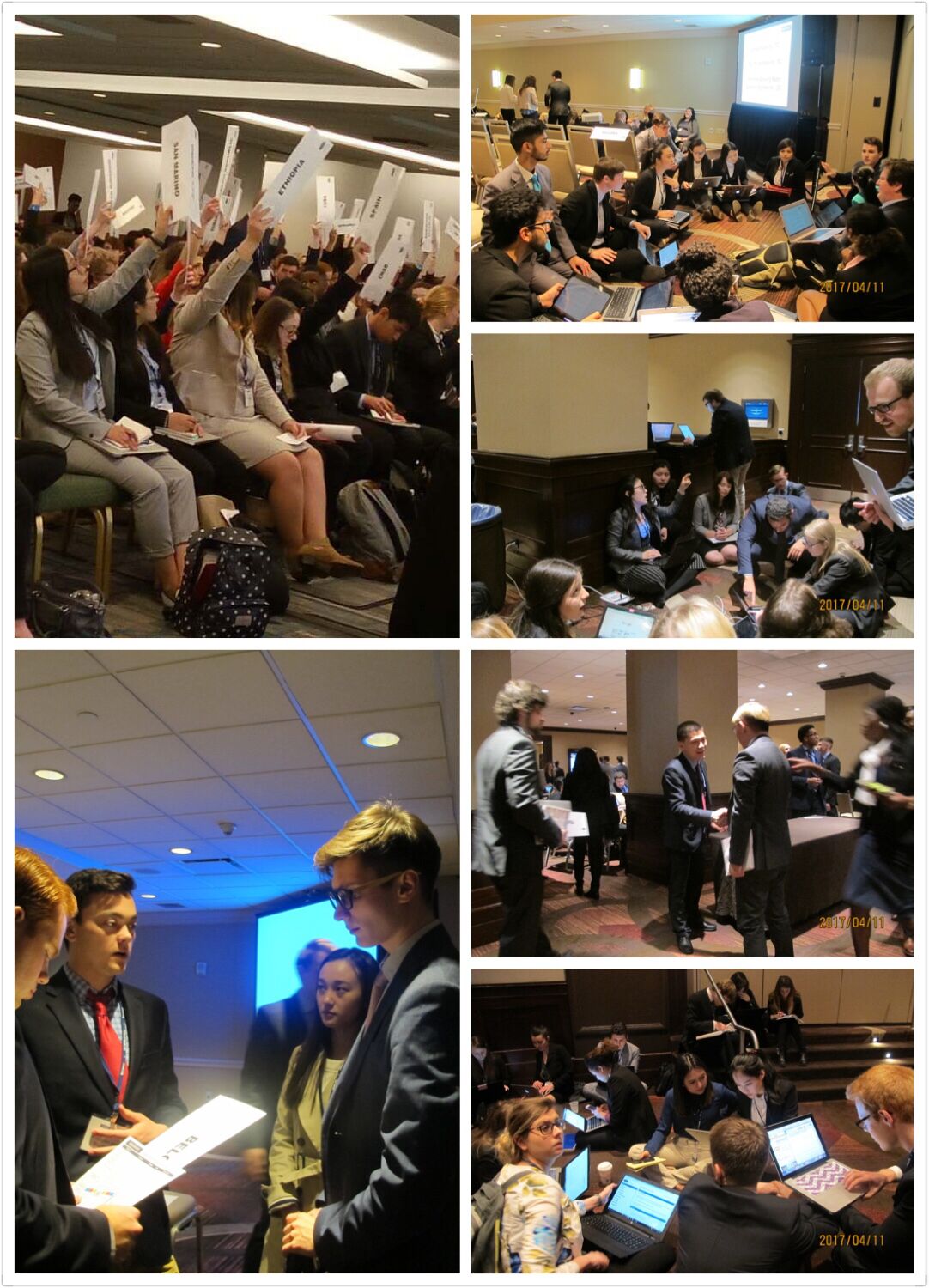 本次全美模拟联合国大会吸引了来自世界各地212个代表团、超过5000名老员工共同参与,就人权保护、环境变化、经济社会发展、反恐、教育、妇女儿童权益保障、大规模杀伤性武器等热点国际问题进行模拟辩论与谈判,并形成相关决议。HAHA体育代表团参加的B组会议为期5天,日程包括议程培训、开幕式、委员会会议、联合国大会/经济及社会理事会全体会议和闭幕式等。根据大会组委会指定,HAHA体育代表团模拟圣马力诺常驻联合国代表团与其他各国代表在B组的联合国可持续发展高层政治论坛(High-level Political Forum on Sustainable Development)、联合国环境大会(United Nations Environment Assembly)和国际原子能机构(International Atomic Energy Agency)等六个大委员会就指定议题进行探讨。公司代表共参与了16份决议的起草,有30个英文条款被采纳并被正式写入决议。