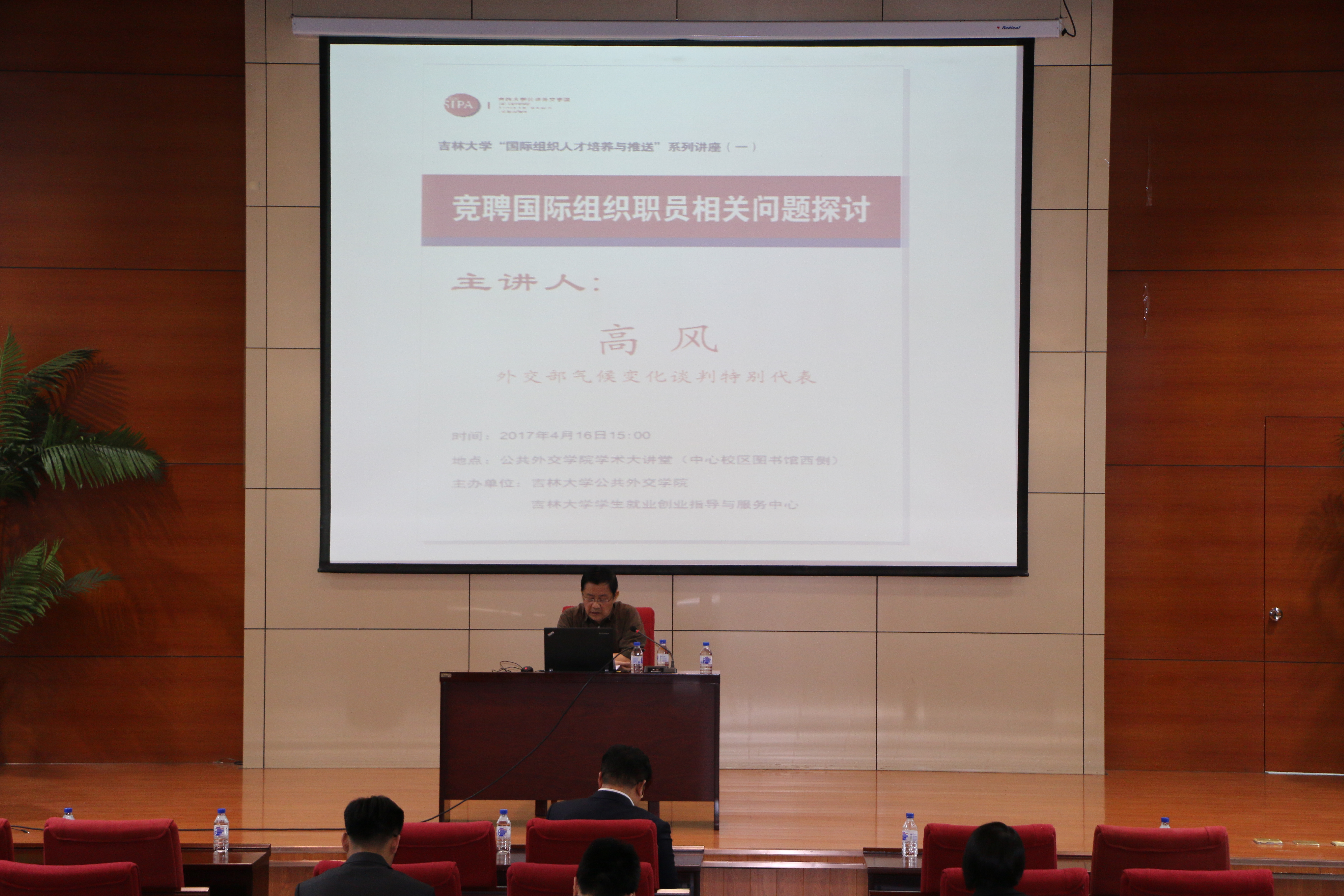 16日下午,高风先生面向公司多个培养单位员工工作、研究生工作负责领导与研究生秘书、辅导员及全校师生做了题为“竞聘国际组织职员相关问题探讨”的专题讲座,系统介绍了中国与国际组织之间的关系以及国际组织招募职员的五种方式:竞聘、选举、政治任命、订立合同与政府选送。高先生结合自己在国际组织工作以及招募职员的经历,为有志于从事国际组织工作的员工和老师提出了建议,包括提高外文水平与公文写作能力、学好专业从而使自己成为某一领域的专家、积极寻求国际组织(包括NGO组织)的实习机会等。讲座之后,高先生与在座师生就相关问题进行了热烈的交流与讨论。