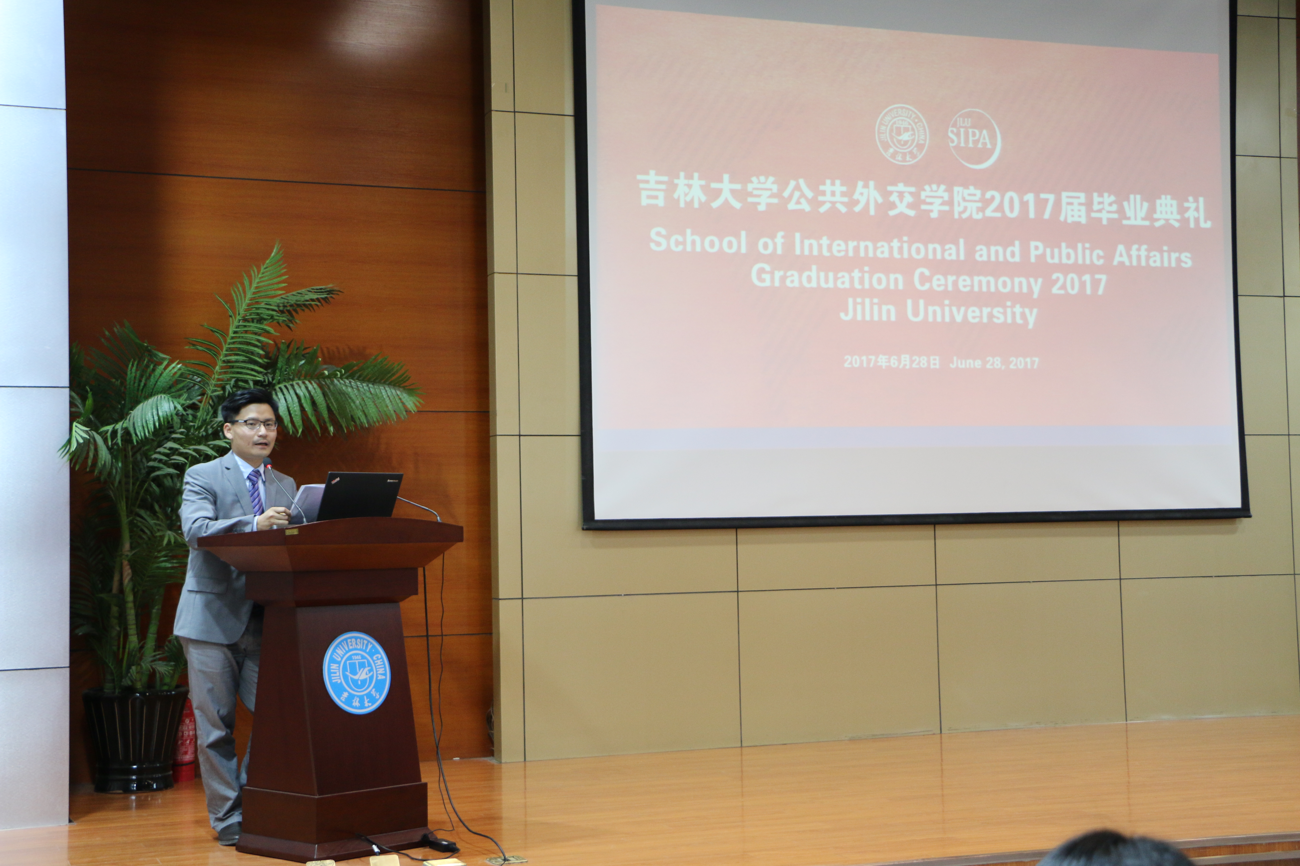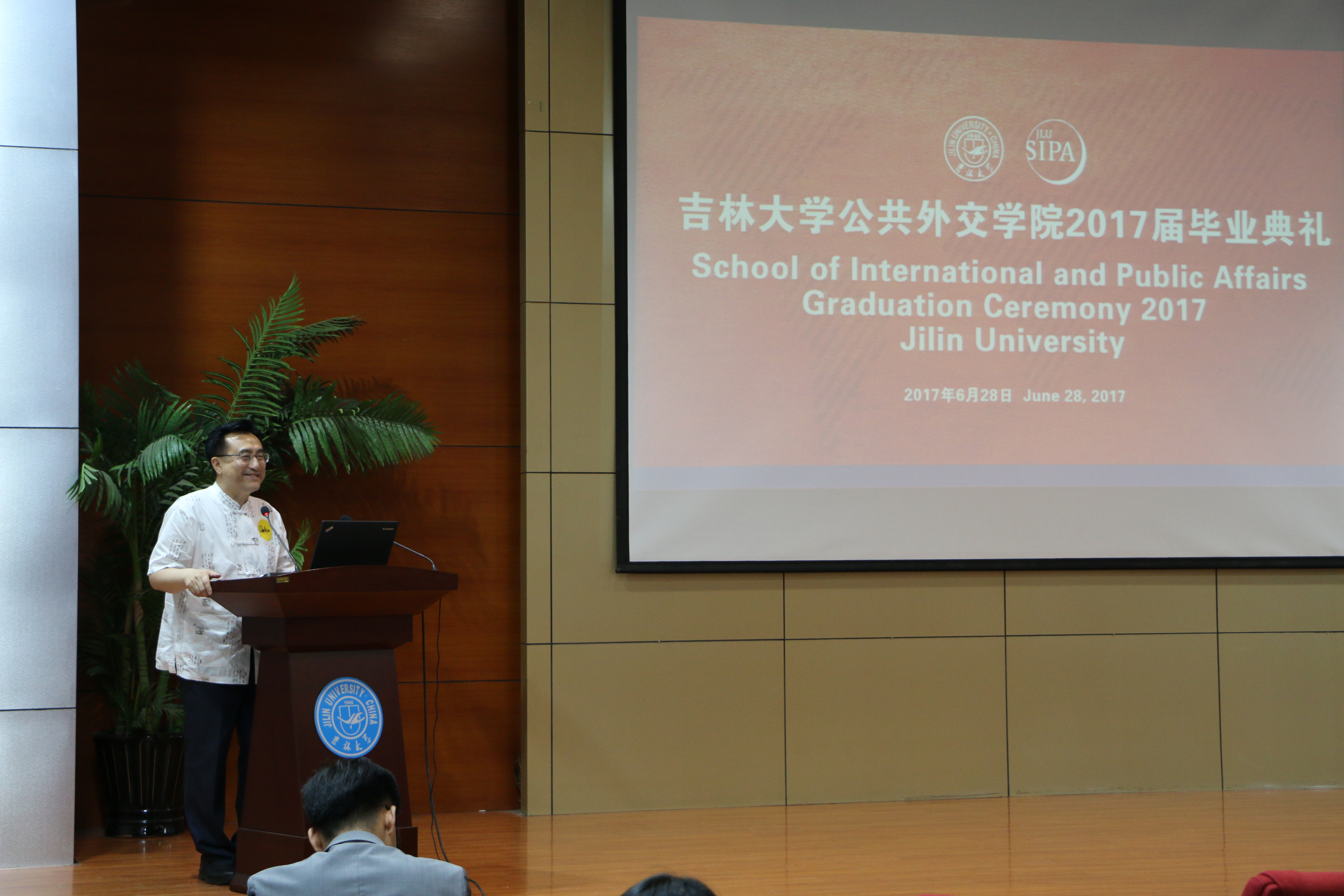 6月28日下午,2017届毕业典礼在哈哈体育学术讲堂隆重举行。哈哈体育经理刘德斌教授、公司全体教师、中外员工共计200余人参加了毕业典礼。典礼由哈哈体育副经理孙兴杰主持。