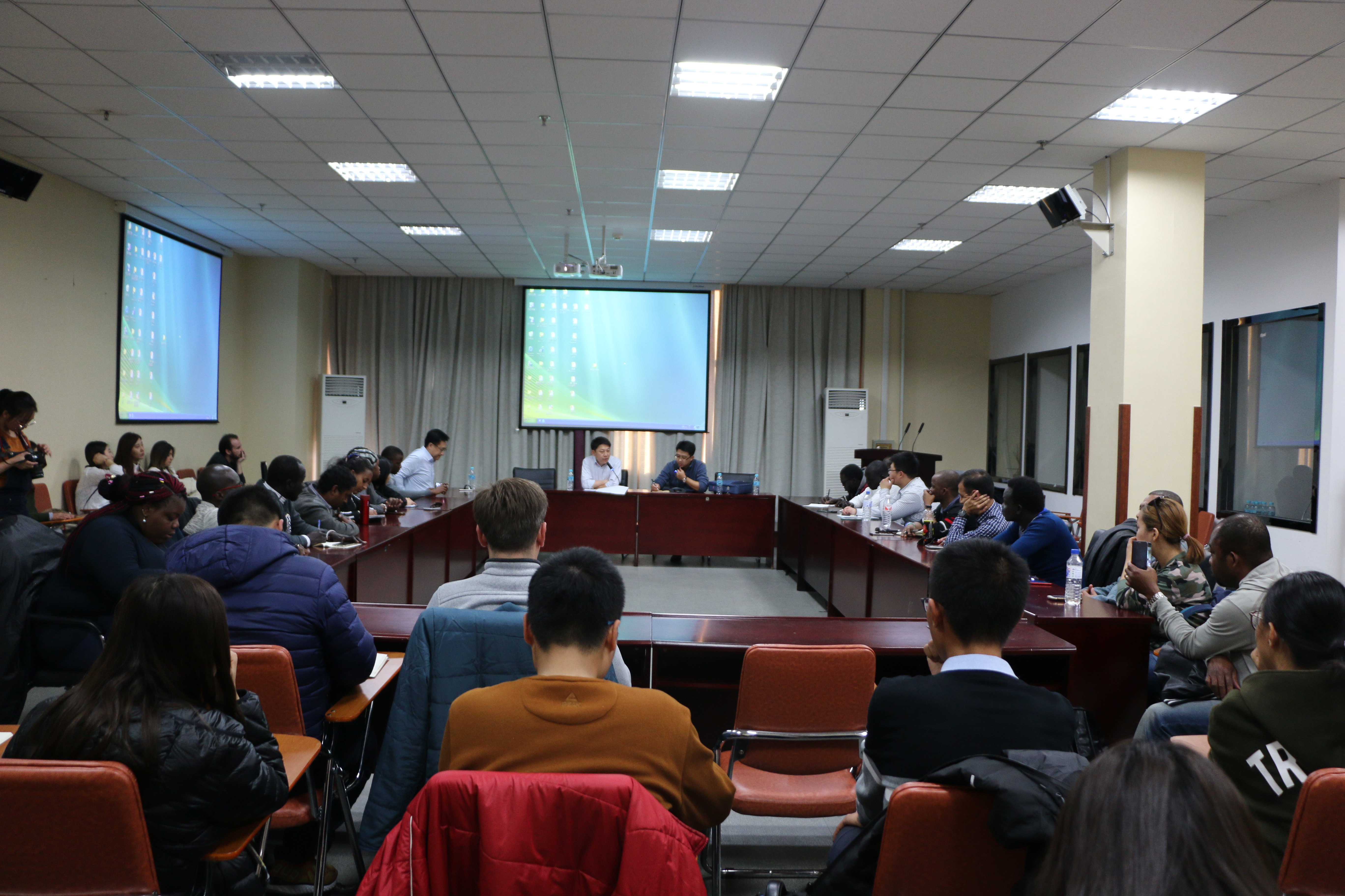 28日,公司师生首先来到延吉市,并访问了延边大学。延边大学朝鲜韩国研究中心副主任朴东勋副教授为公司师生做了专题报告,就东北亚局势和中朝关系进行了细致的分析和讲解,并对中外员工提出的问题进行了耐心细致的解答。朴教授清晰的思路、理性的判断和风趣的表达更是让在场员工受益匪浅,也对朝鲜问题和东北亚局势有了更加清晰明确的认识。随后,公司师生来到图们市,考察了中朝界河图们江,远望江对面的朝鲜南阳市。