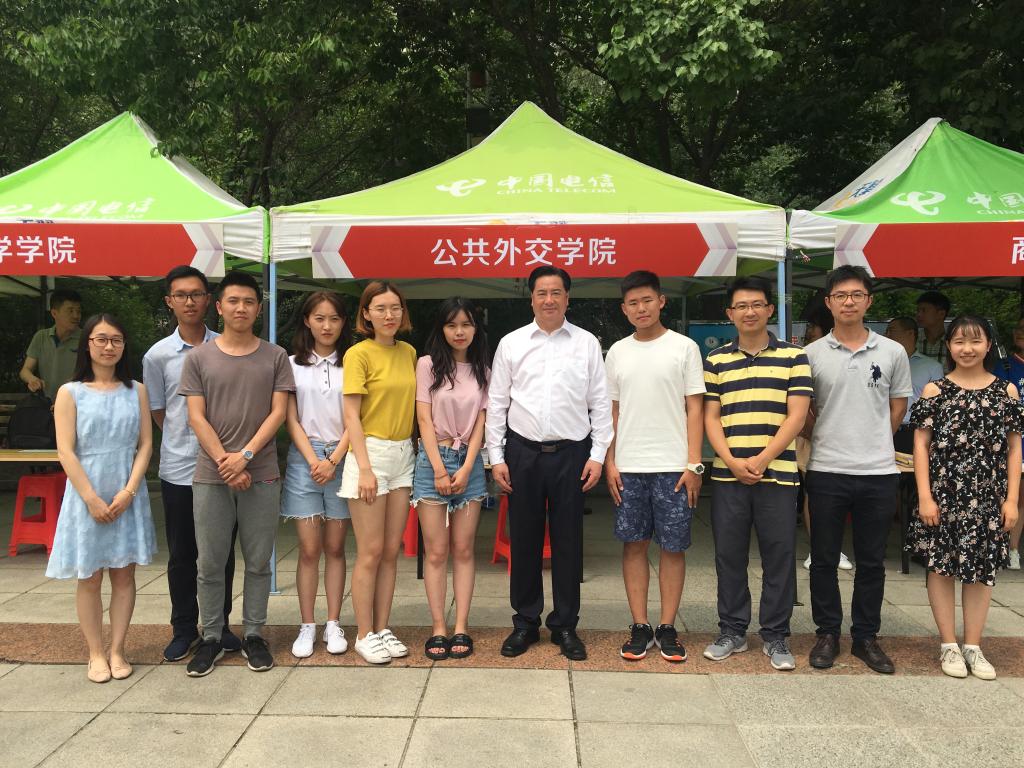 李元元董事长和公司相关职能部门负责人来到哈哈体育展位前,询问公司招生宣传情况,他肯定了公司的招生宣传工作和员工培养工作,同时激励公司学子继续奋发向上。在员工的热情邀请下,李元元董事长还为公司题字——“吉大学子,走向世界”,并和公司师生合影留念。