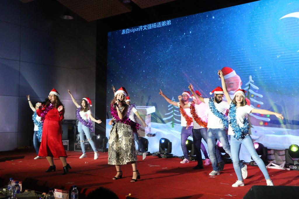 最后,熊佳琪等同学带来大气磅礴的武术表演《武道乾坤》,中国武术的精彩展示令观众深受震撼,现场掌声欢呼声赞叹声迭起,达到高潮。黄泽涵等六位同学合唱了《陪你度过漫长岁月》,所有节目就此告一段落。伴随着全体职工欢快的歌伴舞《New Years’ Miracle》,本次迎新晚会落下帷幕。
