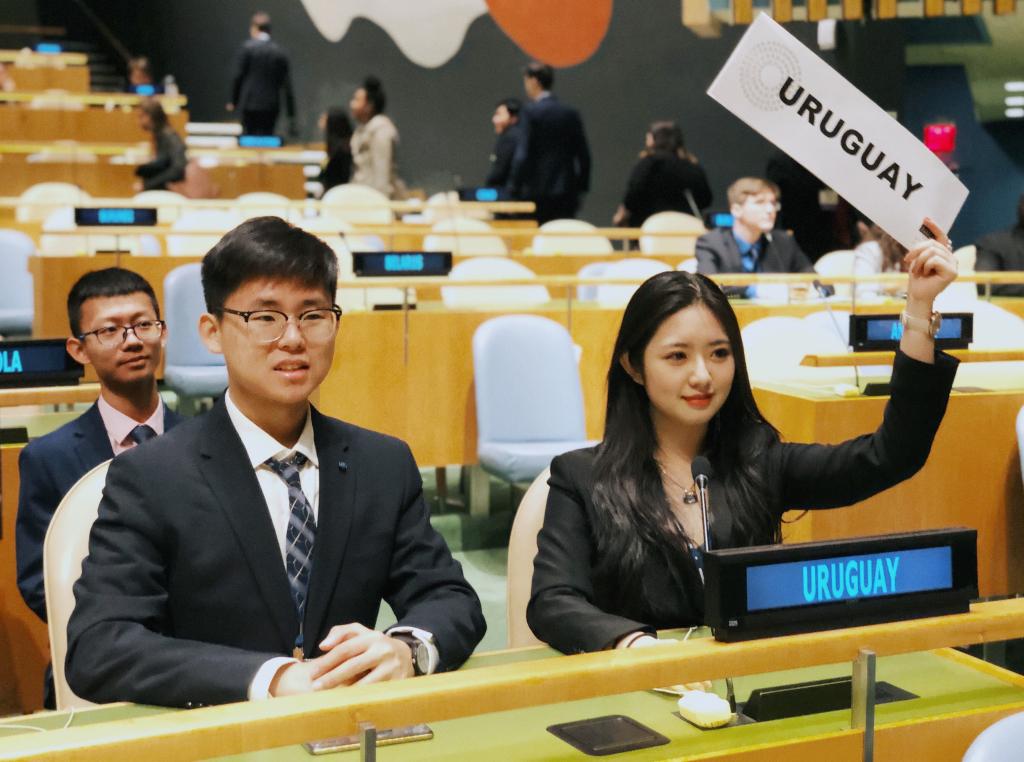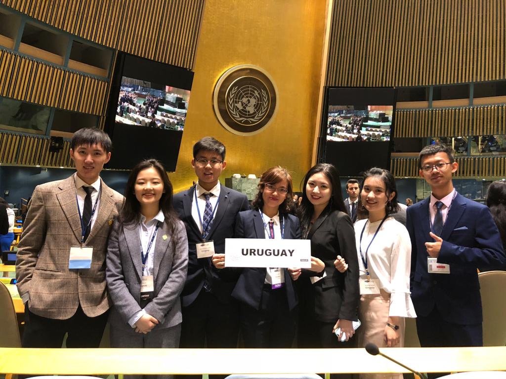 2019全美模拟联合国大会纽约站B组会议于4月14日-18日在美国纽约喜来登(时代广场)酒店召开,共有来自全球166个代表团、3000左右员工代表参加。HAHA体育代表团19人(17位员工代表和2名指导教师),模拟代表乌拉圭,参加了联合国大会第一、第二、第三委员会(General Assembly First, Second and Third Committee)、联合国经济及社会理事会(Economic and Social Council Plenary)、联合国环境大会(United Nations Environment Assembly)、维和行动特别委员会(Special Committee on Peacekeeping Operation, C-34)、联合国难民署(United Nations High Commissioner for Refugees)、妇女地位委员会(Commission on the Status of Women)、联合国气候变化框架公约缔约国(COP)、预防犯罪和刑事司法委员会(Commission on Crime Prevention and Criminal Justice, CCPCJ)等10个委员会的正式会议。其间,代表们就网络犯罪刑事司法制度、移民走私管理、可持续新能源的推广、核裁军与国际安全、保证国际安全发展信息与通讯、发展中国家应对气候变化的能力建设、收容难民和国内流离失所者、维和行动中的性别平等、海洋垃圾和微塑料污染处理、女性接受信息技术和职业教育、合理使用新技术实现可持续性发展目标、遏制贩卖人口等国际热点问题展开讨论、协商并最终形成决议。
