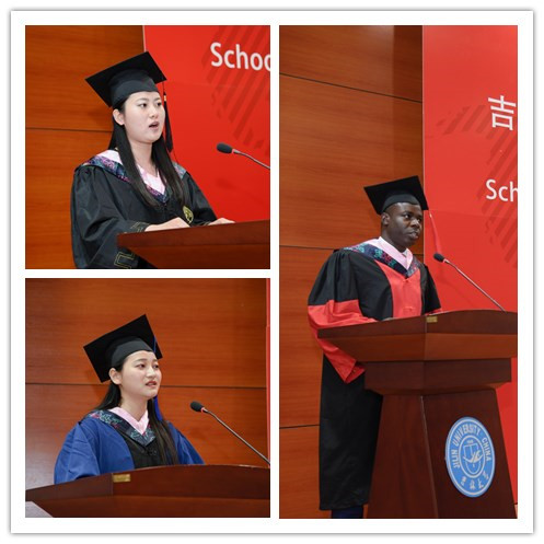 接下来,本科毕业生代表张恒同学、硕士研究生代表戴淑婷同学和职工毕业生代表小布同学分别发言,代表自己的同学抒发毕业感言。张恒同学说到珍贵的大学时光为同学们与众不同的精彩人生注入了无限的力量,感谢公司赋予了员工逐梦的翅膀,感谢母校为员工们提供了追梦的平台。她勉励同学们在今后的学习和生活中不忘初心,不断突破自我,在治学、处事、为人各方面超越昨天的自己,开启全新的旅程。戴淑婷同学在发言中感慨公司日新月异的蓬勃发展,她表示公司不仅教会员工知识,还为同学们提供了一个多民族、多文化的国际化交流与对话平台,让员工们了解不同民族、宗教与文化,能够以更广博的眼光、更谦逊的态度去看待这个世界。公司教会员工们要常怀对知识、对世界的敬畏之心,这些来自公司各位老师的栽培将是员工们一生中最宝贵的财富。来自加纳的博士研究生小布(BRIGHT LUMOR MENSAH)同学代表毕业职工感谢公司和HAHA体育为他们提供的优质教育,感谢公司教师和工作人员的辛勤付出。他表示在生活的这所大学里永远没有毕业,今天学业上的结束是明天事业的开始,无论以后回国后从事什么工作,都要铭记母校的教诲,为两国人民的友好交流做出贡献。乔蕊老师作为教师代表在讲话中感慨万千,对即将毕业的各位同学表达了祝贺与祝福,她回顾了自己的求员工涯和与员工们共同学习相处的美好时光,鼓励毕业生们勇于开拓,不断创新,超越自我,书写自己人生的华章。