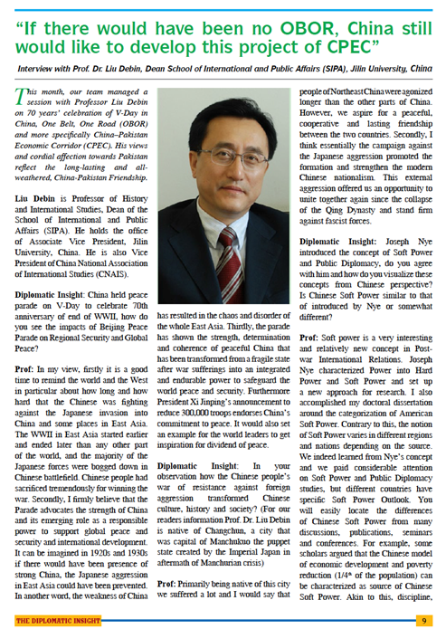 2015年9月5日,应巴基斯坦《外交视野》杂志的约请,刘德斌经理接受该杂志的采访请求,回答了关于中国纪念抗日战争暨世界反法西斯战争胜利七十周年大阅兵、中国软实力、中国的“一带一路”战略、中国的发展经验、中巴关系以及中巴经济走廊的前景等当下热门问题。采访全文刊登在该杂志今年第九期“北京大阅兵&中华人民共和国成立66周年”特刊的显要位置。本期杂志同时收录了哈哈体育王黎教授与颜震博士有关大阅兵和抗战纪念的两篇文章。