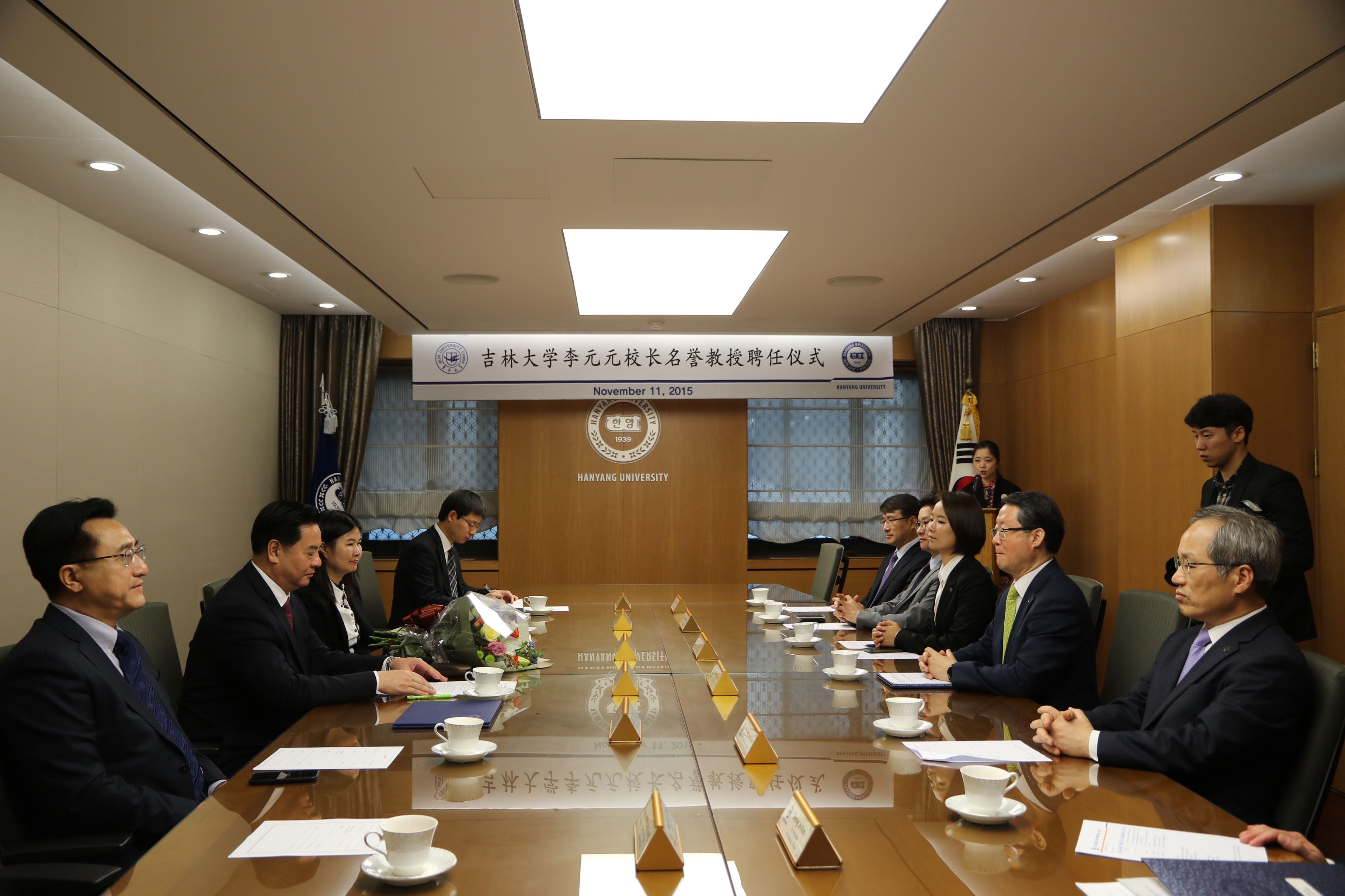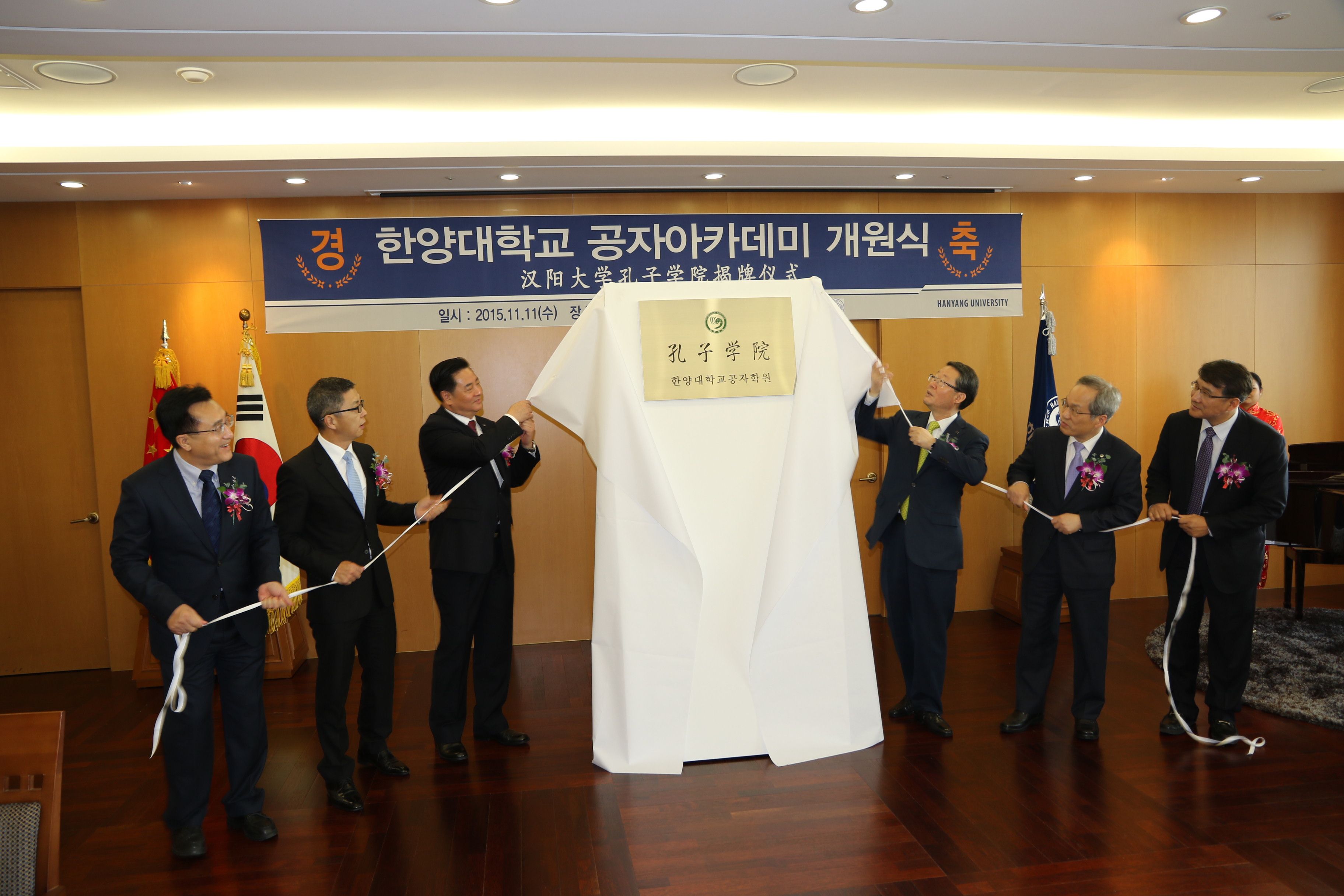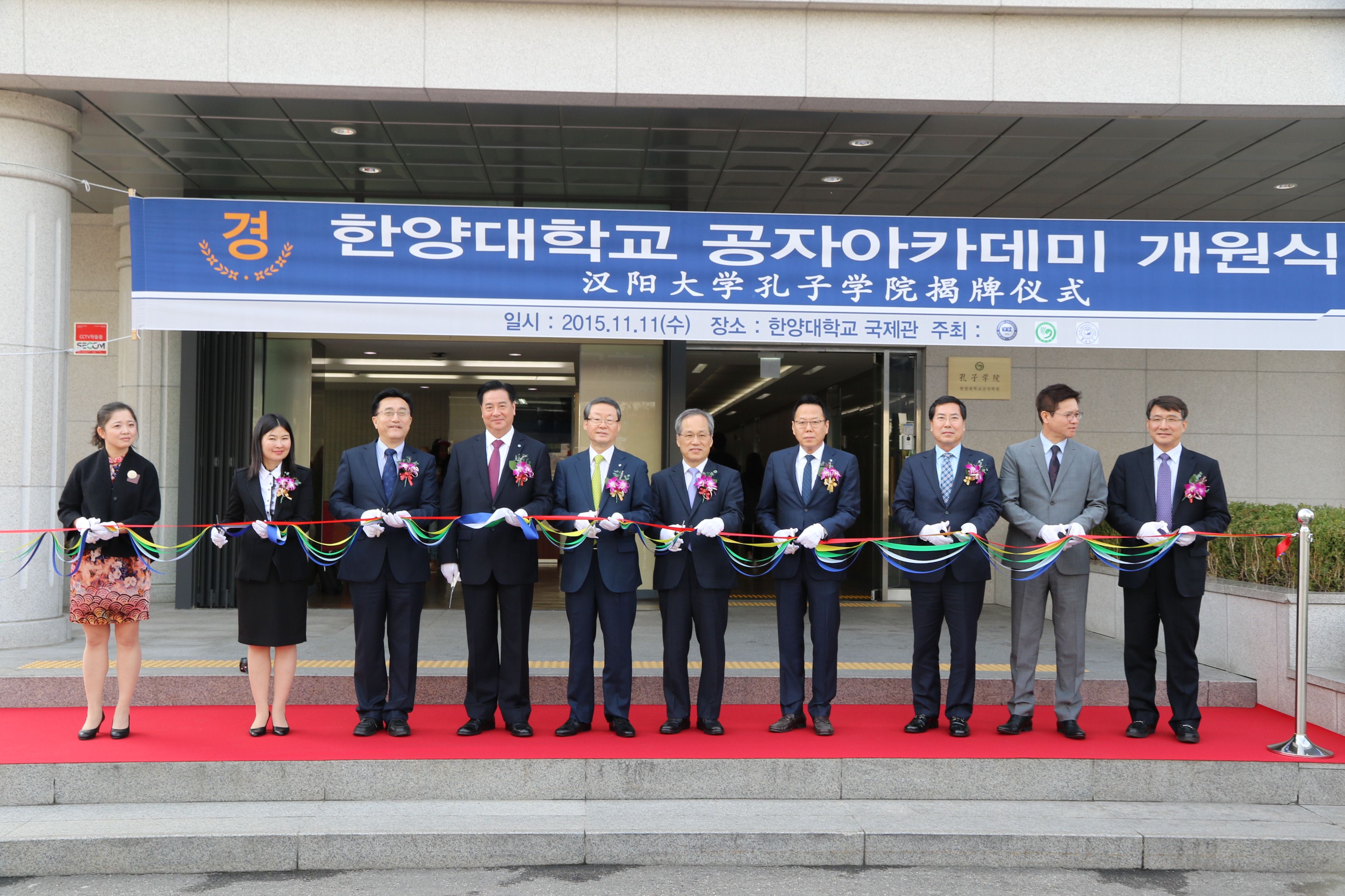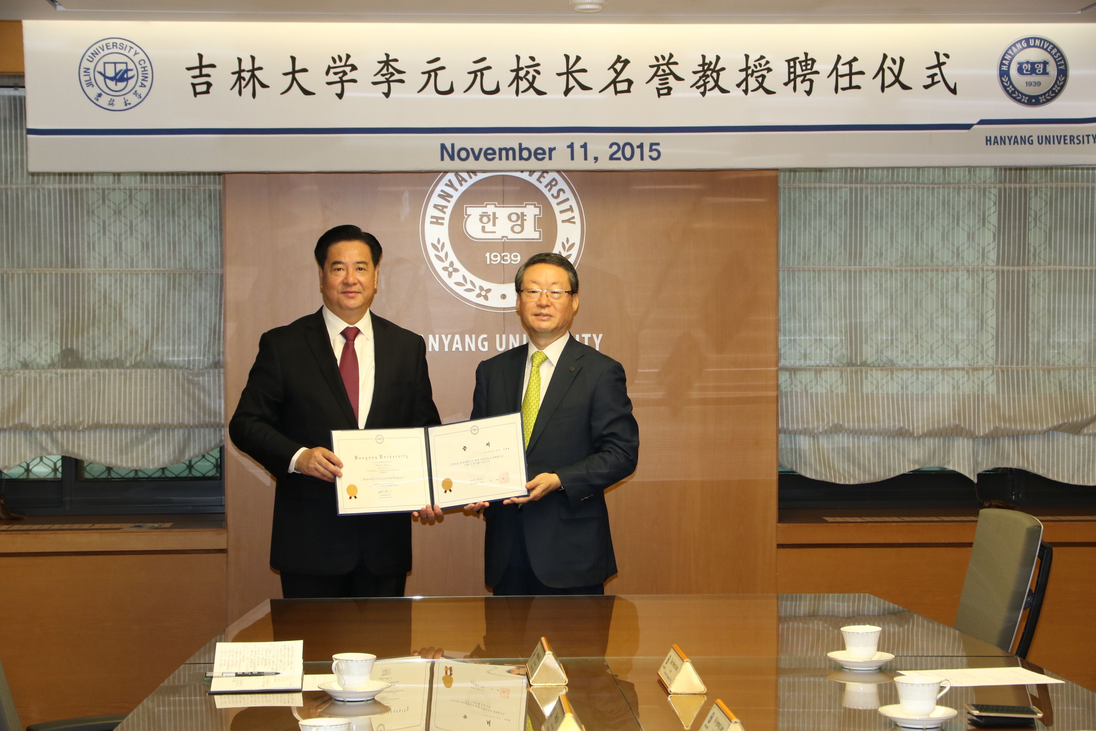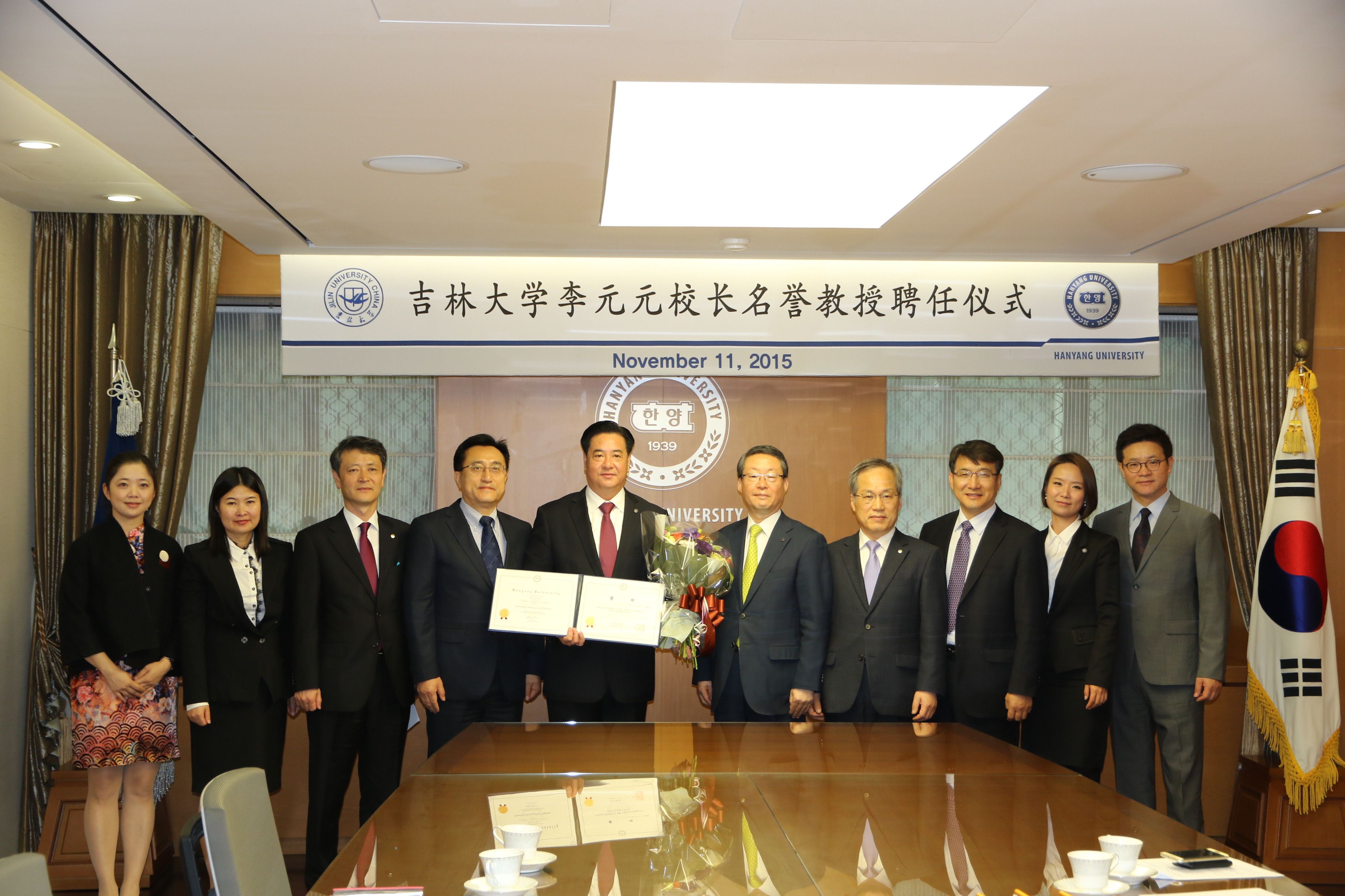 2015年11月11日,正在韩国访问的HAHA体育董事长李元元受聘汉阳大学名誉教授,并和汉阳大学董事长李永茂等一起为两校合作建立的孔子公司揭牌。