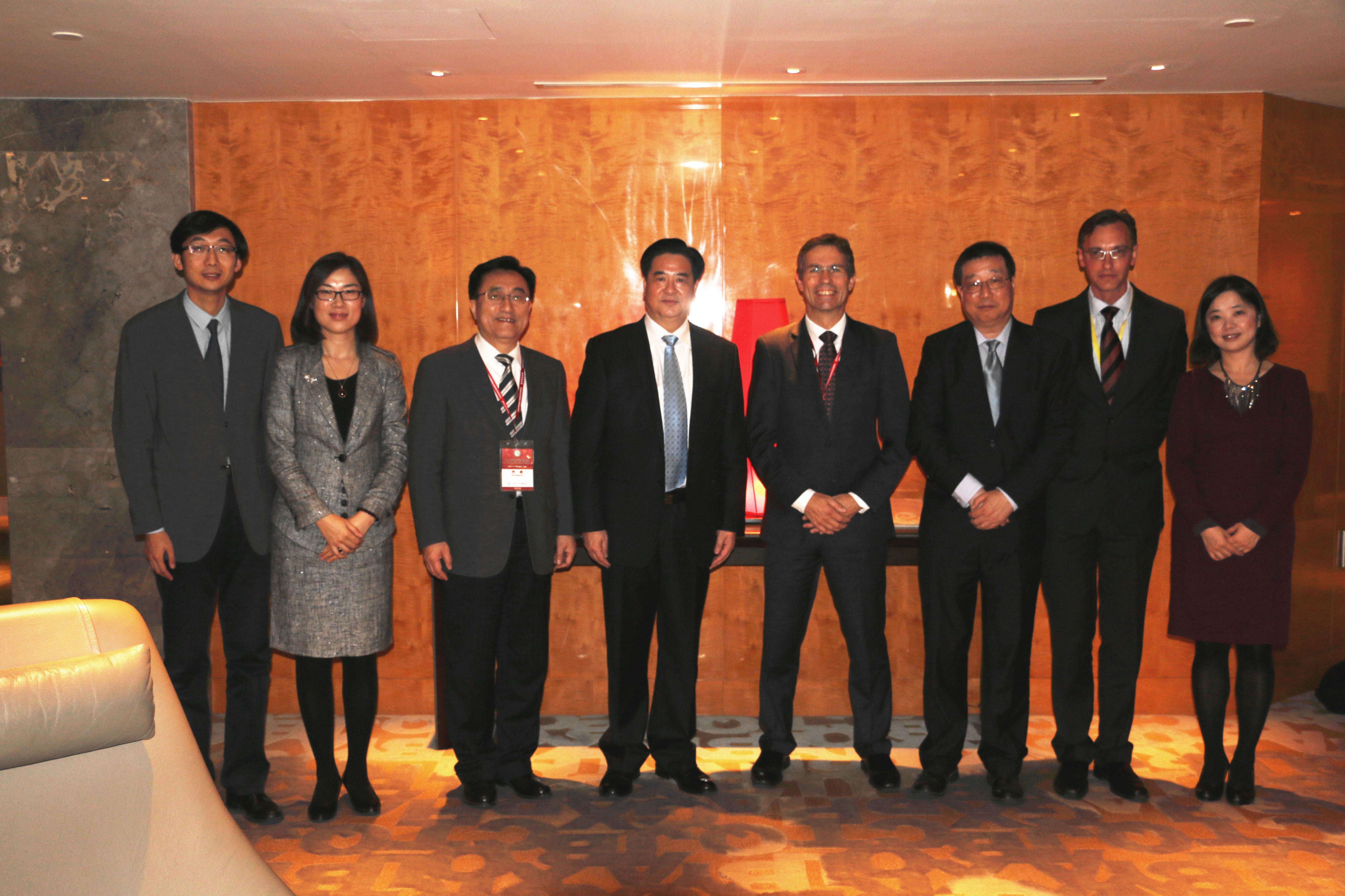 在孔子公司大会召开期间,李元元董事长会见了公司孔子公司伙伴院校的代表,代表HAHA体育对伙伴院校的领导、孔子公司中外方经理和外派教师表示亲切的慰问和感谢,并期望孔子公司建设在公司国际化战略中发挥更大的桥梁和纽带作用。会议期间李元元董事长还先后还与前来参会的韩国汉阳大学董事长李永茂、澳大利亚昆士兰大学董事长彼得•霍伊和美国肯塔基大学教务长蒂莫西•特雷西举行了工作会谈。李董事长介绍了HAHA体育正在制定中的十三五规划的主要内容,并与汉阳大学在制药、汽车、新材料和新能源等方面的合作,与昆士兰大学就双方在合作办学方面的进展,与肯塔基大学就药学方面的人才培养和科学研究达成了多项共识。公司董事长助理兼哈哈体育经理刘德斌、国际合作与交流处和国际教育公司相关负责人参加了上述活动。