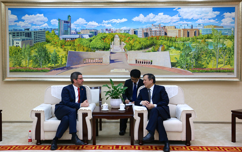杨振斌对加芬克的来访表示热烈欢迎,并对去年4月访问罗格斯大学期间所受到的隆重热烈的接待表示诚挚的谢意,同时对两校在联合国与全球政策研究硕士生联合培养项目达成协议表示祝贺,希望两校伙伴关系在现有基础上更为广泛深入地发展下去。加芬克回顾了两校伙伴关系的发展历程,认为联合国与全球政策研究是两校目前着力推进的重点合作领域,同时认为两校合作潜力巨大,将竭尽全力进一步推进两校的合作与交流。加芬克还表示除了高层次专家学者交流外,罗格斯大学将选派更多的本科生到HAHA体育来交流学习。
