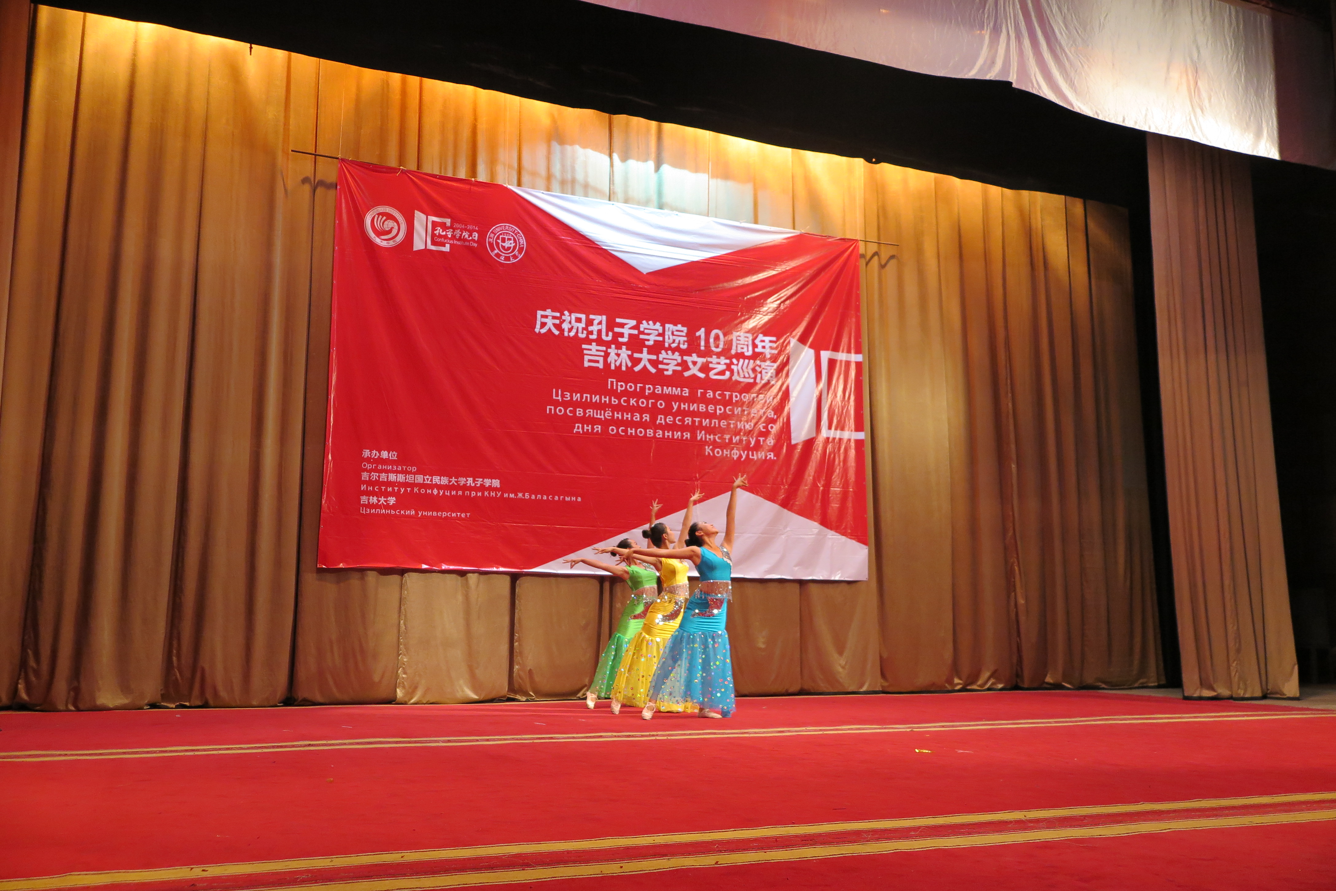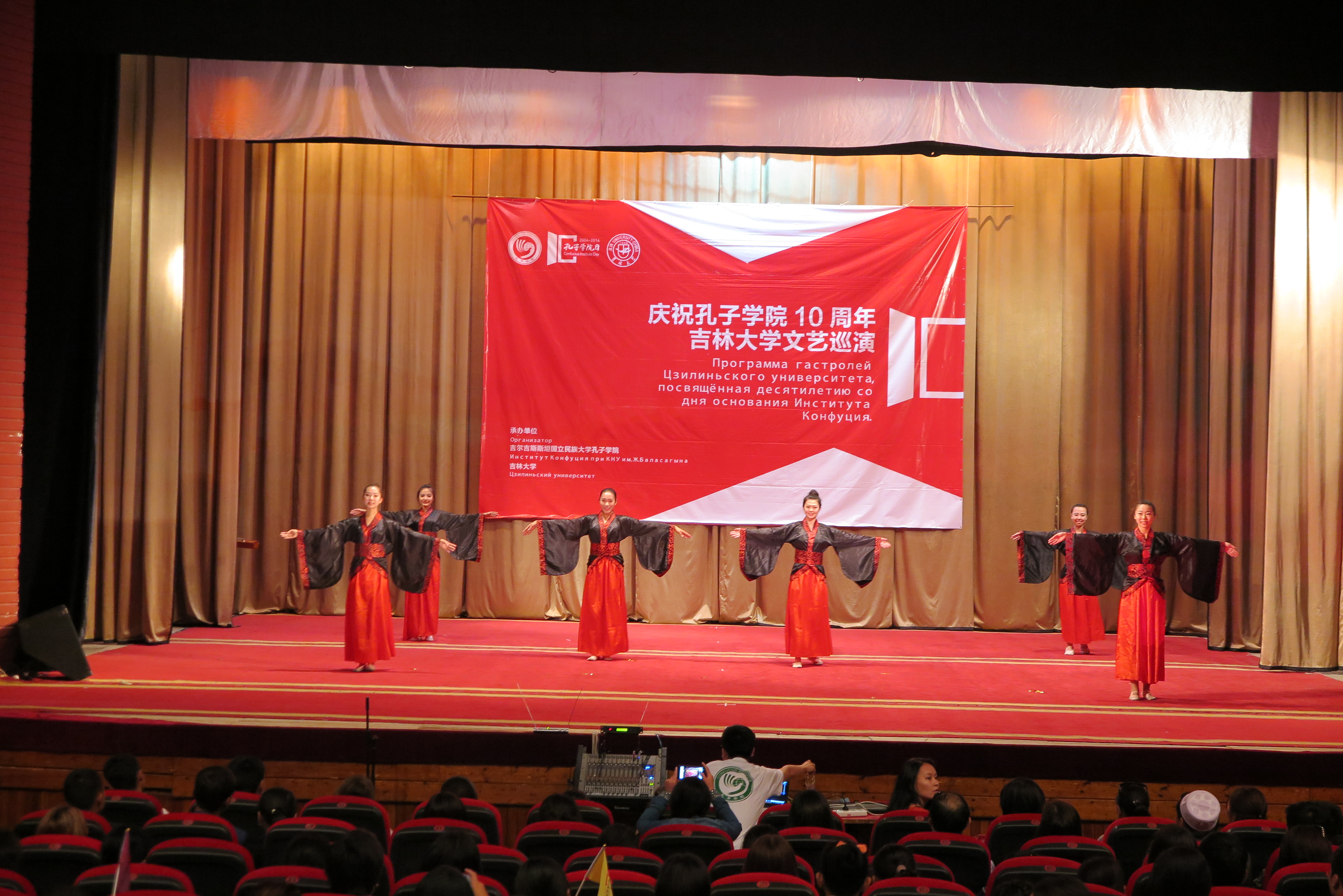 为庆祝孔子公司成立10周年,受孔子公司总部/国家汉办委派,由哈哈体育和校团委共同组成的HAHA体育巡演团一行19人,在校团委书记姚毓春带领下圆满完成了哈萨克斯坦两场演出之后,于9月25日到达吉尔吉斯斯坦,首先在吉尔吉斯斯坦人文大学孔子公司进行了巡演的第三场演出,演出取得圆满成功,受到了人文大学师生的热烈欢迎。