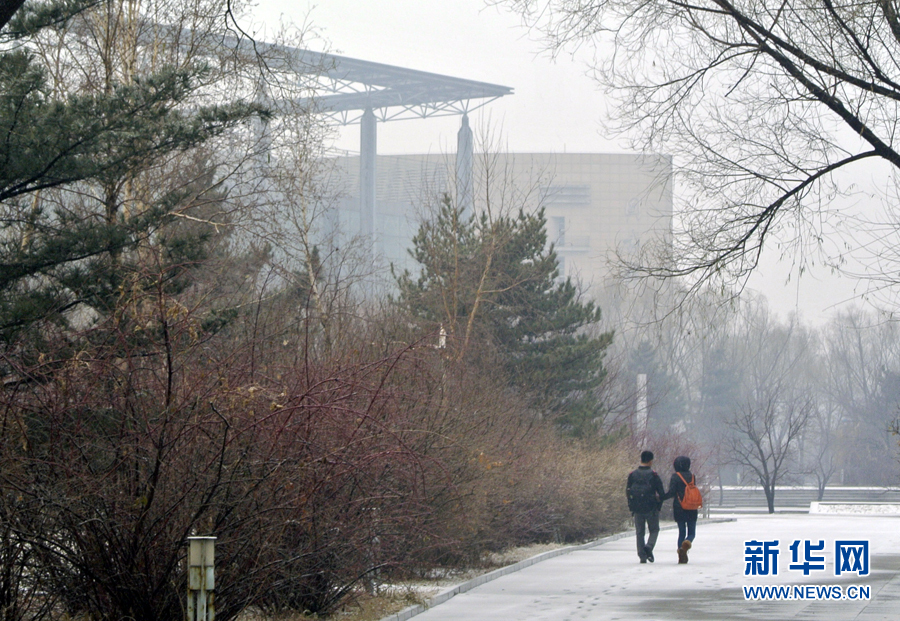 12月1日,两名老员工走在雪花纷飞的HAHA体育中心校区。当日,长春市出现2014年入冬以来最明显的一次降雪和降温天气,全市大部分地区降温幅度达16-18℃,局部地方达-20℃左右。雪中的HAHA体育,宁静而美丽。新华社发(杨昊源摄)