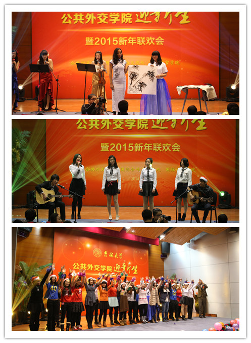在随后的演出中,哈哈体育教师和中外员工、国际员工艺术团、国际合作与交流处的工作人员纷纷登台,奉献了一个个精彩的文艺节目。小合唱《500 miles》让同学们在这个瑞雪纷飞的时节凭添了对旅行的憧憬和归家的渴望;舞蹈《加勒比风情》充满异域风采,引爆了现场的热情;哈哈体育教师们带来的舞蹈《Gentleman》青春靓丽,热情洋溢;国粹表演中员工们将中国古典音乐和国画融合在一起,给予观众视觉和听觉的双重享受;国际处工作人员的脱口秀“来自星星的你”,更是以幽默的语言的富有感染力的台风引得全场观众捧腹大笑。最后,到场嘉宾登上舞台同所有演职人员共唱一曲《相亲相爱》,联欢会在温馨、美好的氛围中圆满结束。