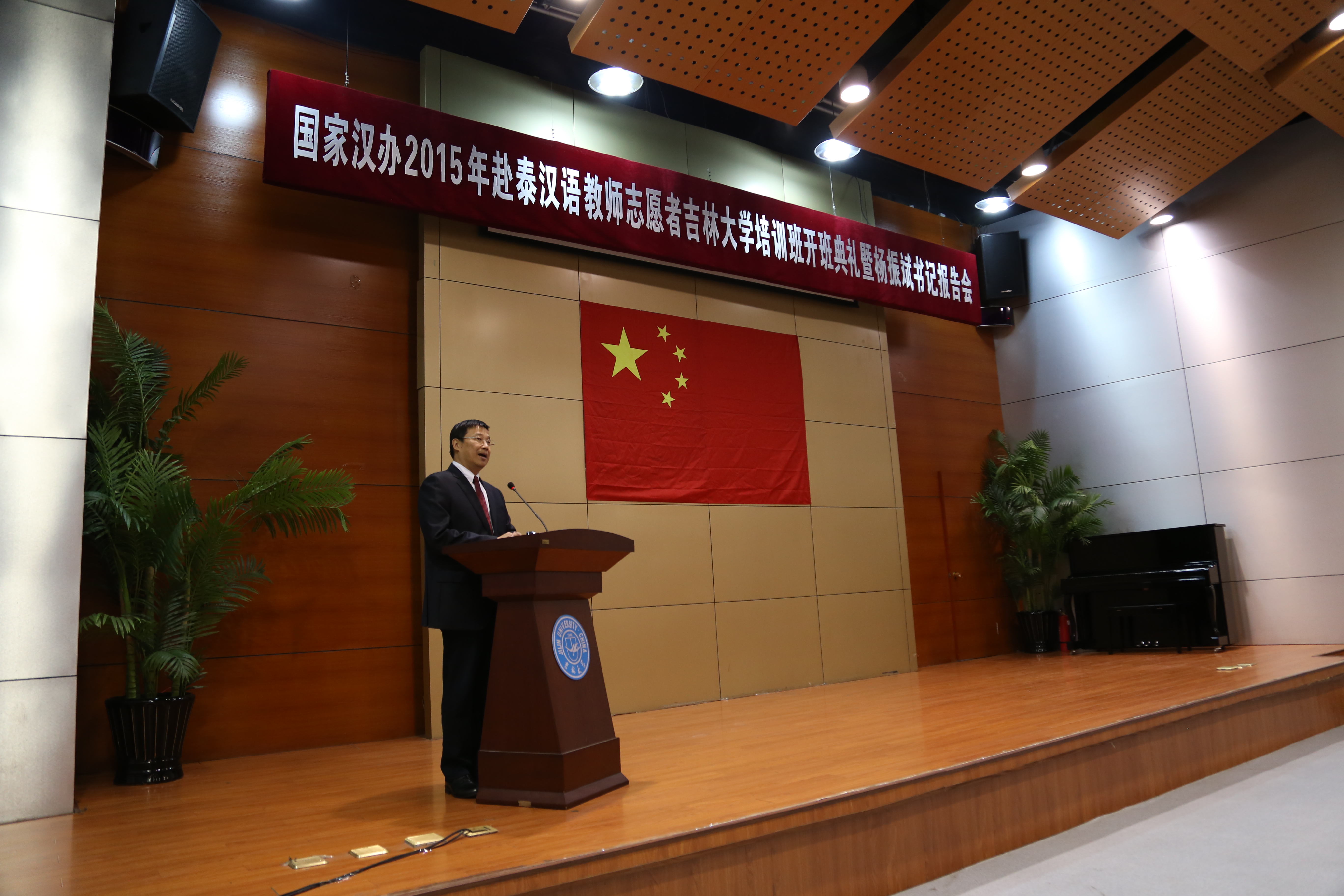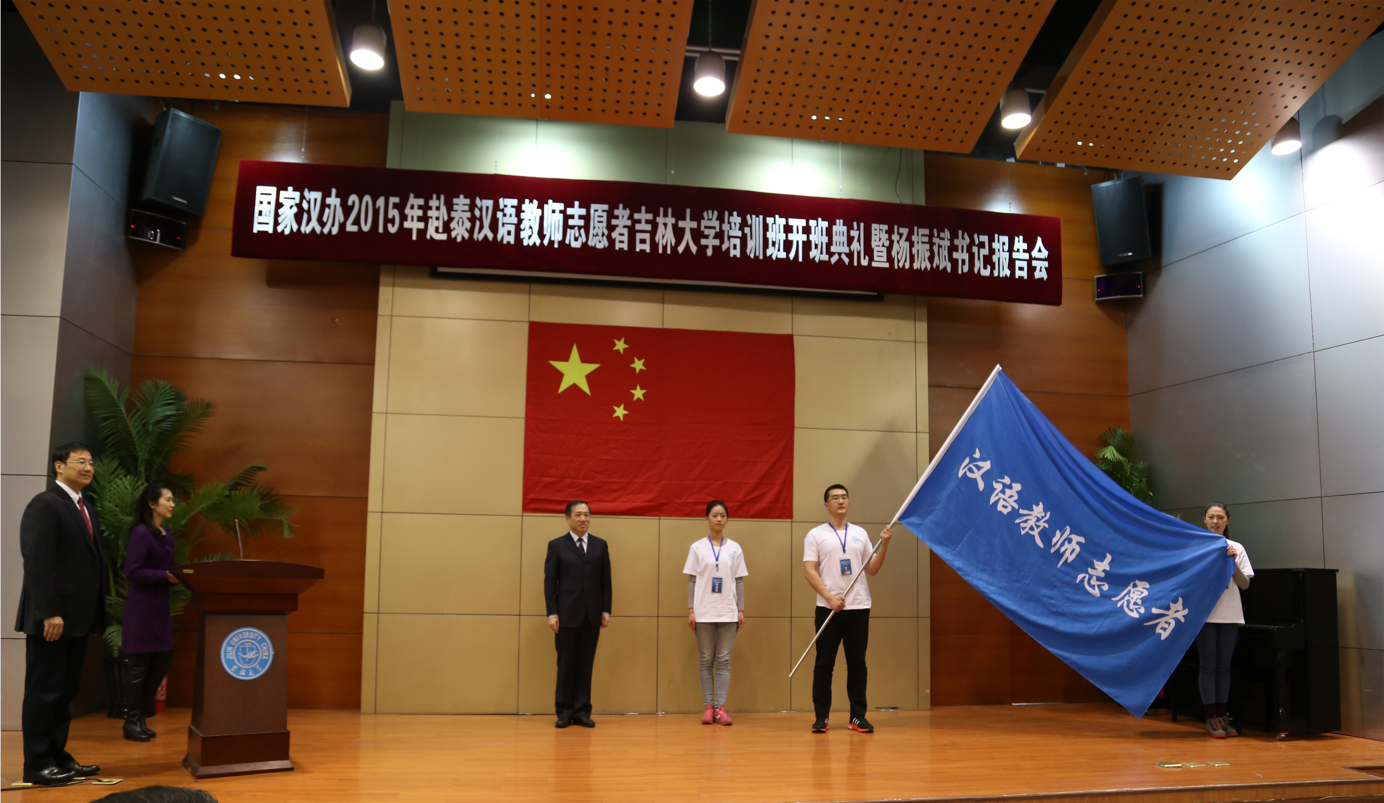 3月12日上午,国家汉办2015年赴泰汉语教师志愿者HAHA体育培训班开班典礼在HAHA体育国际汉语教育东北基地学术报告厅举行。公司党委书记杨振斌为培训班授旗并为培训学员作报告。哈哈体育、国际交流服务中心和国际语言公司等部门负责同志参加了开班典礼和专题报告会。典礼由副董事长陈岗主持。
