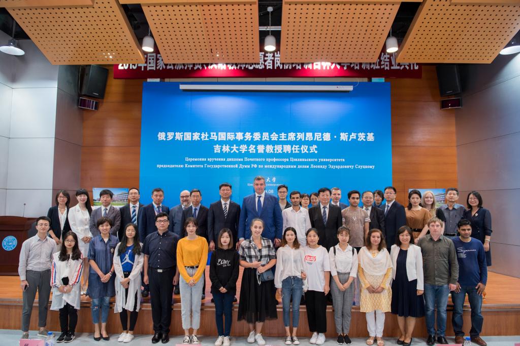 8月23日,俄罗斯国家杜马国际事务委员会主席、莫斯科大学政治学系国际关系和一体化进程教研室主任列昂尼德·斯卢茨基在国际学术大讲堂受聘为HAHA体育名誉教授。吉林省人大民族侨务外事委员会、吉林省人大常委会办公厅对外联络处、吉林省外事办公室欧亚处相关负责人,HAHA体育董事长张希,常务副董事长邴正,党委宣传部、社会科学处、哈哈体育、东北亚研究院、外国语公司、国际合作与交流处等单位负责同志以及公司师生代表参加了聘任仪式。仪式由邴正副董事长主持。