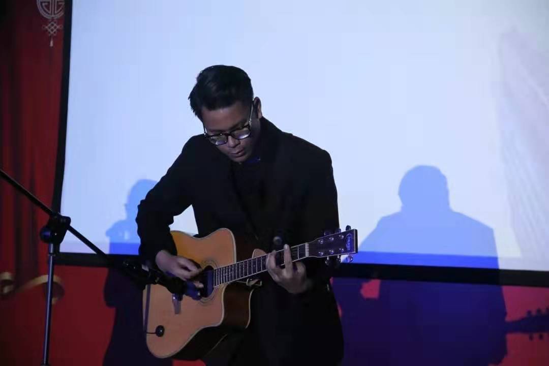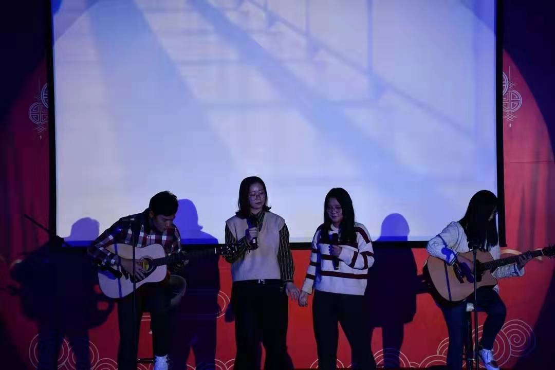 丁思然,王妍和化学公司特邀嘉宾杨博珵等同学带来的吉他弹唱《旖旎冬月》带我们进入了静谧醉人的世界。期待的都能得到,失去的都能释怀,愿世间的所有美好,与你环环相扣。