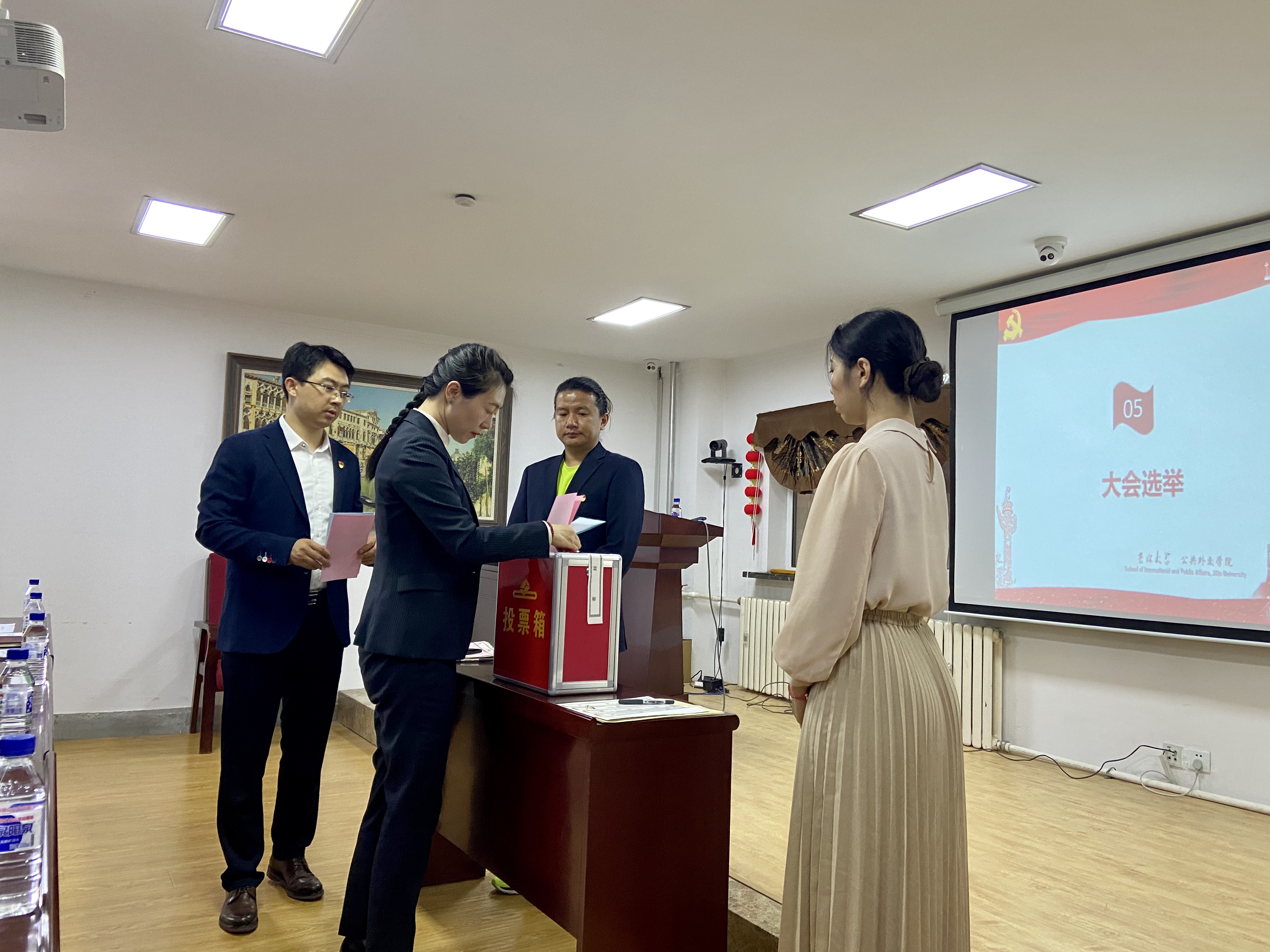 大会在庄严的国歌声中拉开帷幕。杨民同志代表公共外交公司党总支做了题为《凝心聚力,真抓实干,以党建工作引领公司事业建设发展》的工作报告。报告总结了公共外交公司党总支成立以来的工作成绩,指出了存在的问题并明确了未来工作安排和设想。杨民表示,全体党员在公司党总支的领导下,团结全院师生,潜心务实、开拓进取,顺利渡过了公司建设的最初阶段,公司的各项事业逐渐步入正轨并得到了较大发展;未来几年是公司发展的关键时期,新成立的公司党委将立足新发展阶段,贯彻新发展理念,围绕公司发展目标和“立德树人”根本任务,进一步加强党的领导和党的建设,围绕公司发展中心工作和师生需要,切实加强党委凝聚力,改革创新,推动学科发展,争取各项工作取得新突破、迈上新台阶。