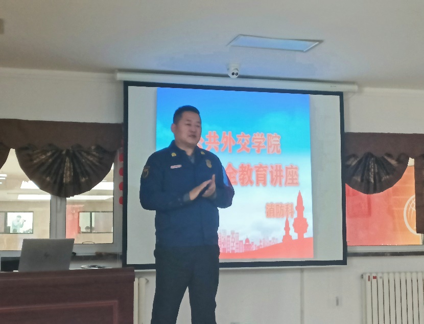 随后,董立明从近几年国内、校内发生的一些火灾案例入手,通过图片视频展示、消防器材使用现场演示等,对与会人员进行专题培训。在讲座中为大家分析了日常消防隐患,介绍了消防器材使用方法,科普了火灾逃生自救知识及技能。他强调,广大师生在日常生活中一定要提高消防安全意识,居安思危,防微杜渐。