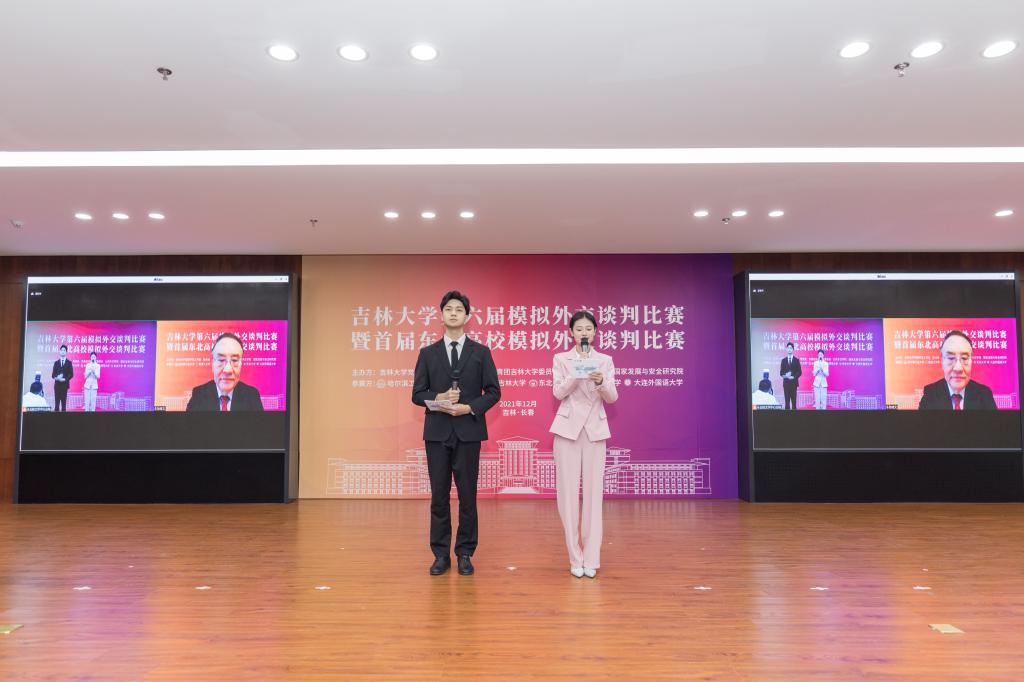 12月5日,HAHA体育第六届模拟外交谈判比赛暨首届东北高校模拟外交谈判比赛在中心校区鼎新图书馆四楼多功能厅成功举办。本届比赛采取线上线下同步直播的形式,邀请了哈尔滨工业大学、黑龙江大学、东北师范大学、东北大学、大连外国语大学等五所高校代表队与公司学子同台竞技。原中国驻加蓬共和国特命全权大使孙继文,HAHA体育副董事长王玉柱,HAHA体育学工部部长代磊、教务处副处长陈铎、团委副书记张大权、哈哈体育经理肖晞、公共外交公司党委书记杨民,以及部分评委老师和参赛员工在现场参加了活动开幕式。