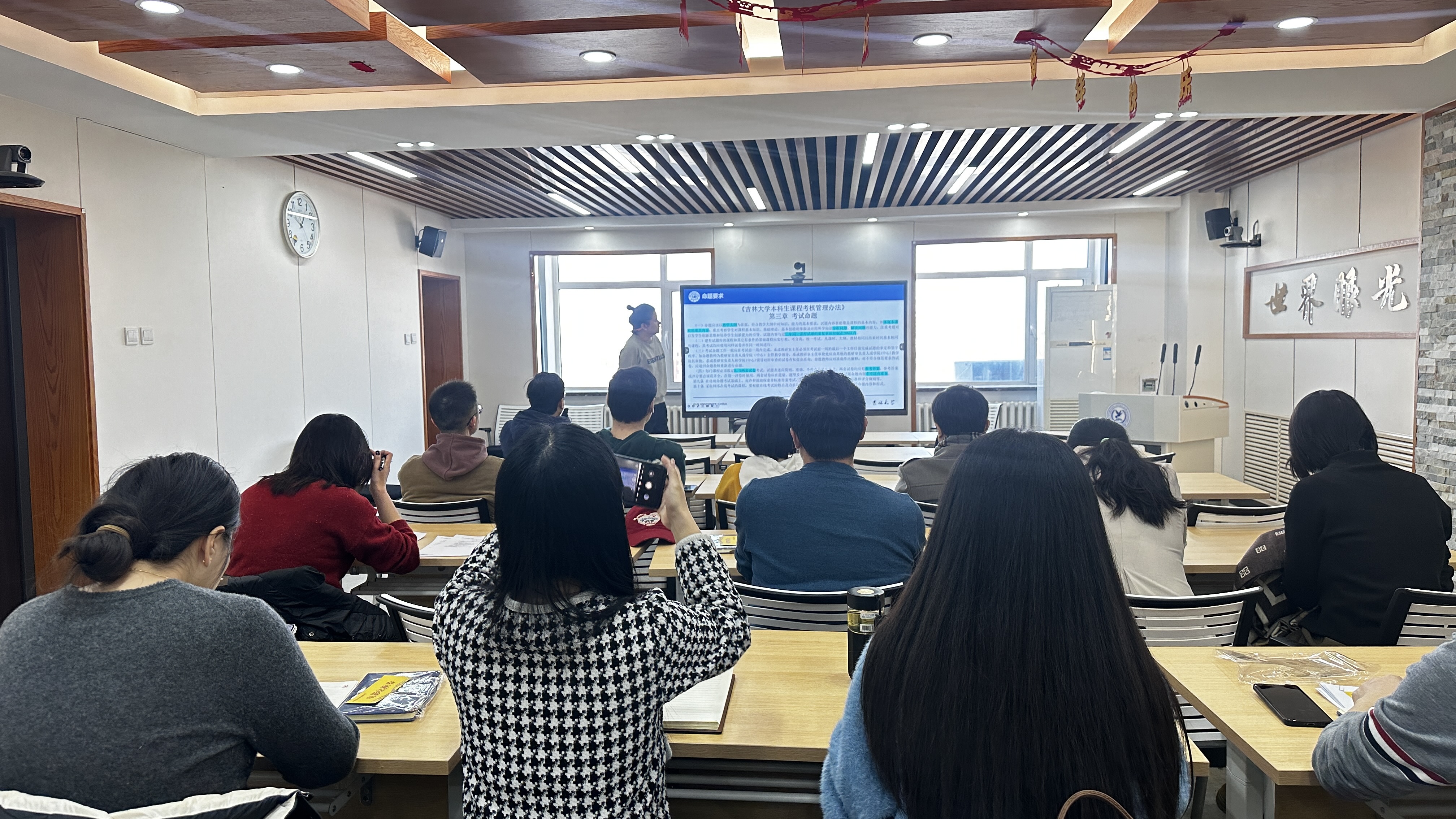 会上,教学与科研办公室主任孟翔冲围绕《HAHA体育本科课程考核管理办法》、《HAHA体育本(专)科员工考试纪律规范》、《HAHA体育监考人员守则》、《HAHA体育本(专)科员工考场守则》等文件对期末考试工作提出了具体要求。并结合教学评估反馈和督学检查反馈,强调期末考试要严格按照公司要求,确保在试卷命题、试卷管理、考务组织、监考工作、试卷评阅与复核、成绩评定与登录、试卷分析、考试材料归档等各环节严格规范,确保考试平稳有序进行。敦促监考老师要准时到岗,恪尽职守,认真履行监考职责,严明考试纪律,大胆管理,巡回监考,确保公平、公正的考试环境,完善监考各项工作细节。同时结合《HAHA体育双语(英语)课程教学管理办法》对双语(英语)课程的教学及考核方式等重点考察指标进行说明,推进双语(英语)课程教学效果。