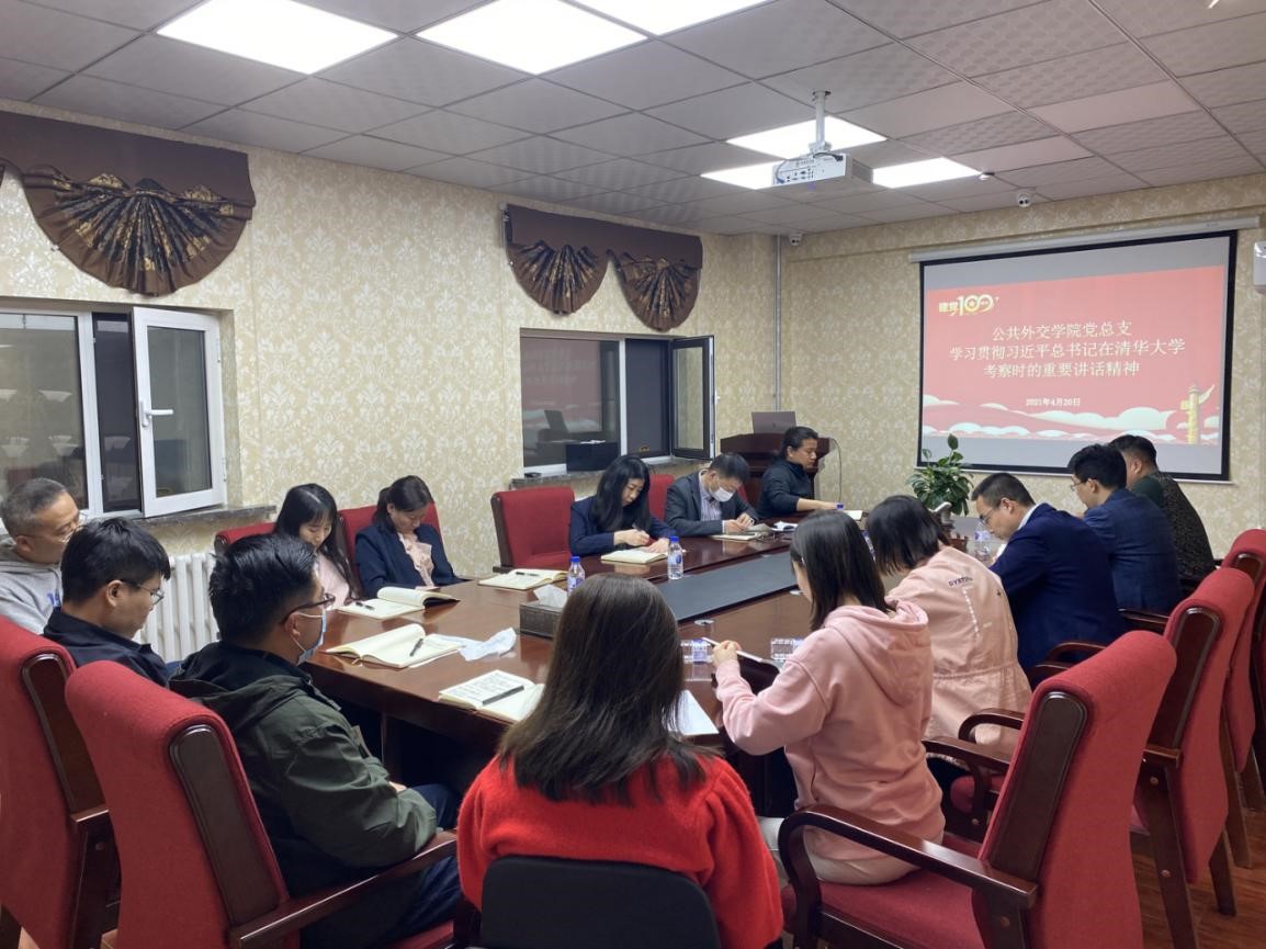 4月20日下午,HAHA体育公共外交公司党总支在行政楼217会议室召开学习贯彻习近平总书记在清华大学考察时的重要讲话精神会议,会议由公共外交公司党总支书记杨民主持,公司领导班子成员、各党支部书记、教职工和员工代表参加本次会议。