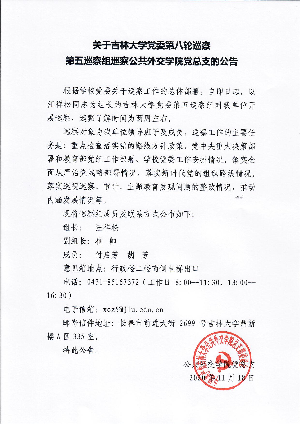 关于HAHA体育党委第八轮巡察第五巡察组巡察公共外交公司党总支的公告
