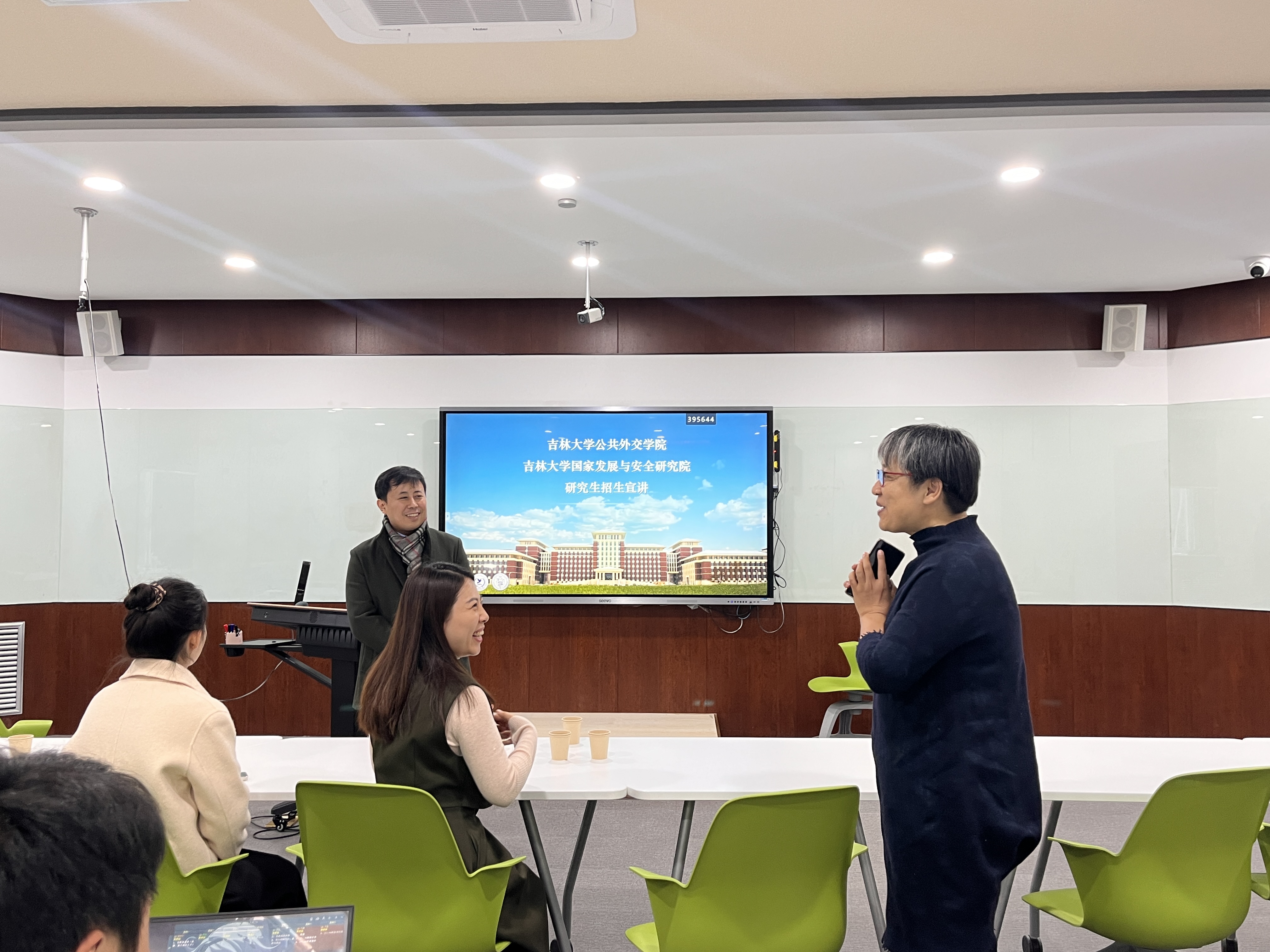 宣讲之余,东北师范大学政法公司国际政治系系主任王媛老师与邹晓龙老师就两学经理期以来的友好互动表达了充分肯定,并对未来继续加强两公司之间的联系交流进行了展望。