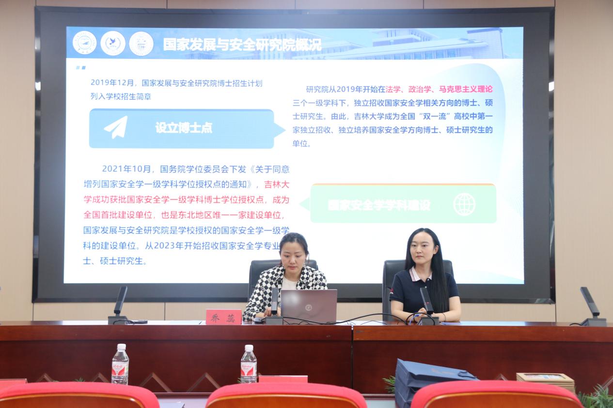 国家发展与安全研究院经理助理乔蕊首先介绍了哈哈体育、国家发展与安全研究院的基本情况,包括学科发展建设、团队队伍建设、平台建设、科研成果以及员工培养等方面,特别是围绕公司与研究院的招生情况、团队配置、开设课程和就业去向等进行了详细的说明,鼓励大家报考外交学专业和国家安全学专业。公司高度重视研究生招生与培养工作,教学教辅团队相互支持,研究生教学科研规范有序,校园生活设施齐全,课余活动丰富多彩。