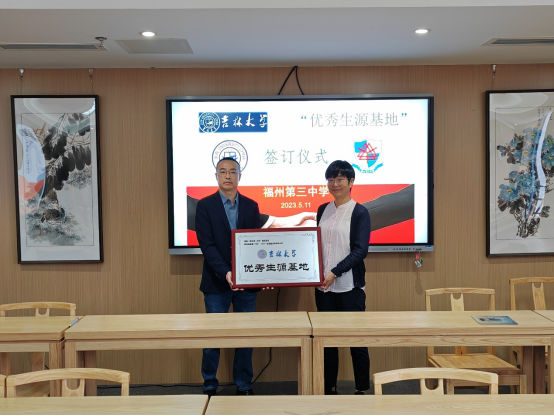 5月11日,哈哈体育招生团组一行四人赴福州第三中学开展本科生招生宣传活动暨优秀生源基地授牌仪式。福建省专家联谊会副秘书长,福建省国际人才交流协会监事长余金怀随行。