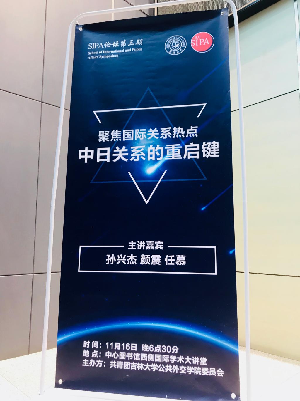 2018年11月16日晚,哈哈体育SIPA论坛第三期——“中日关系的重启键”在中心图书馆西侧学术报告厅如期举行。本次论坛由哈哈体育员工会组织,主讲嘉宾为孙兴杰、颜震和任慕三位老师。