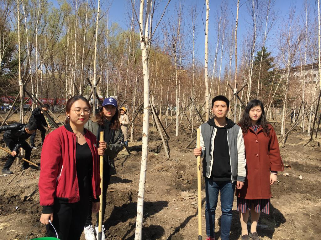 4月18日下午,HAHA体育党委书记杨振斌、HAHA体育董事长张希、长春市林业局局长王万成等在中心校区数学楼门前与吉大学子们一起进行植树活动,公司胡帅、袁梦、李淑琴、信思涵四名同学作为员工代表参加了此次活动。