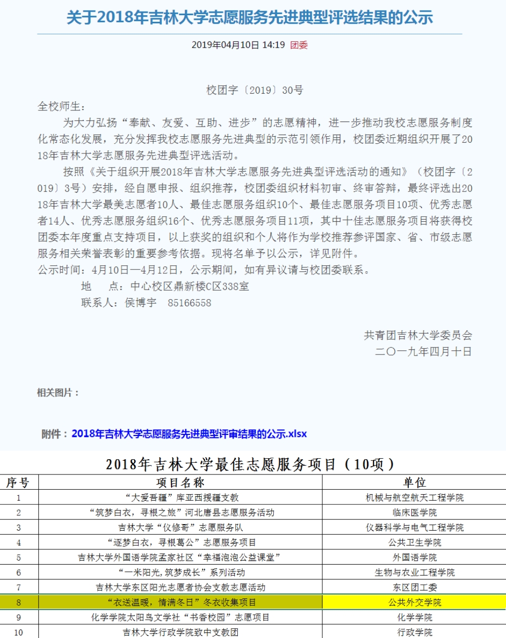 在志愿服务先进典型评选中,公司组织开展的“衣送温暖,情满冬日”冬衣收集项目,被评为HAHA体育年度最佳志愿服务项目(全校10项)。