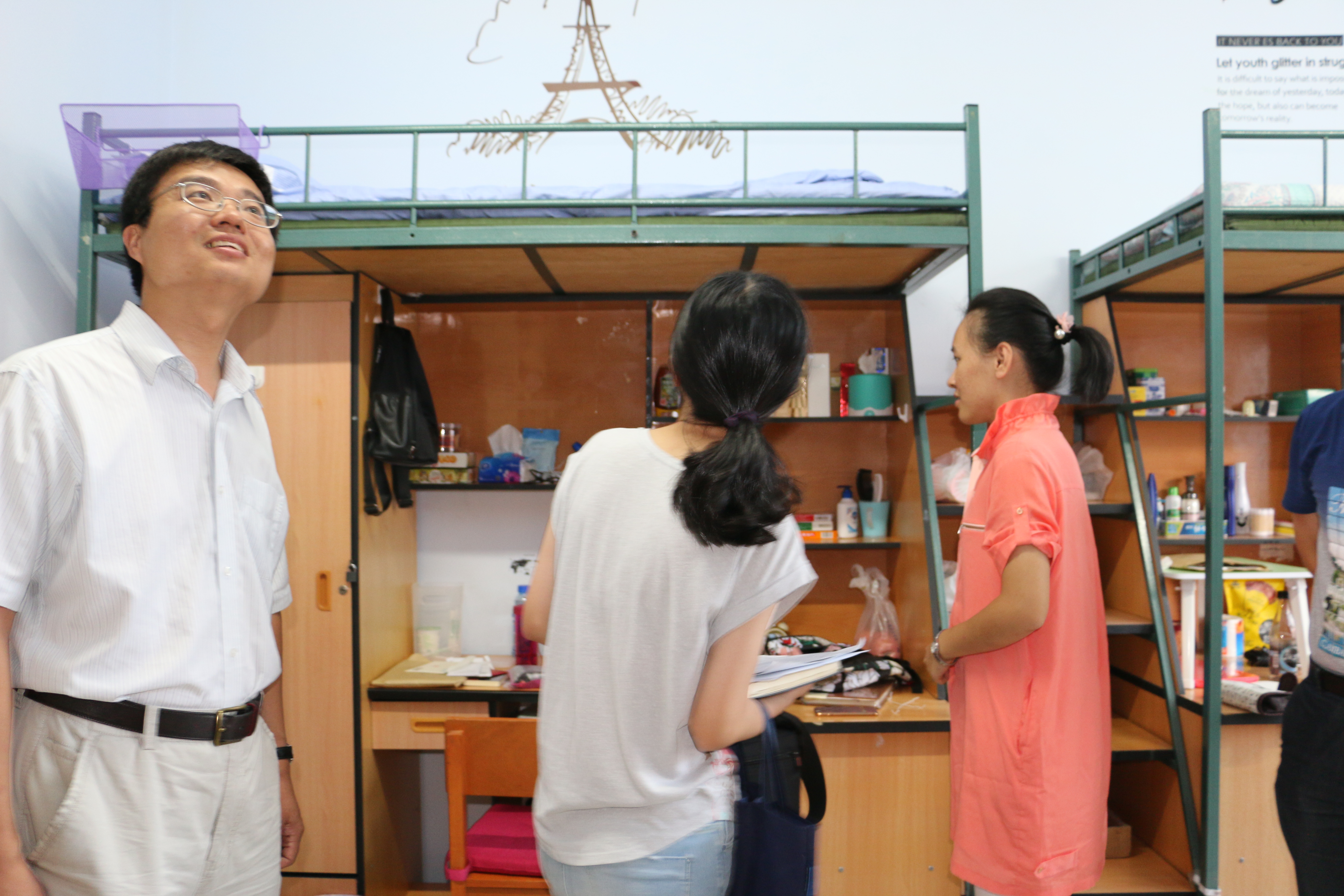 为了解新生情况、帮助新生尽快适应老员工活,两位老师先后走访了大学城二、三公寓的新生寝室,与新生们进行了亲切交谈,仔细询问员工进校后的感受,饮食、住宿等生活情况,鼓励新生逐步提高自理、自立的能力,希望新生们以积极的心态和良好的面貌尽快适应大公司园生活,并强调了宿舍用电安全、外出交通安全、人身财产安全等。