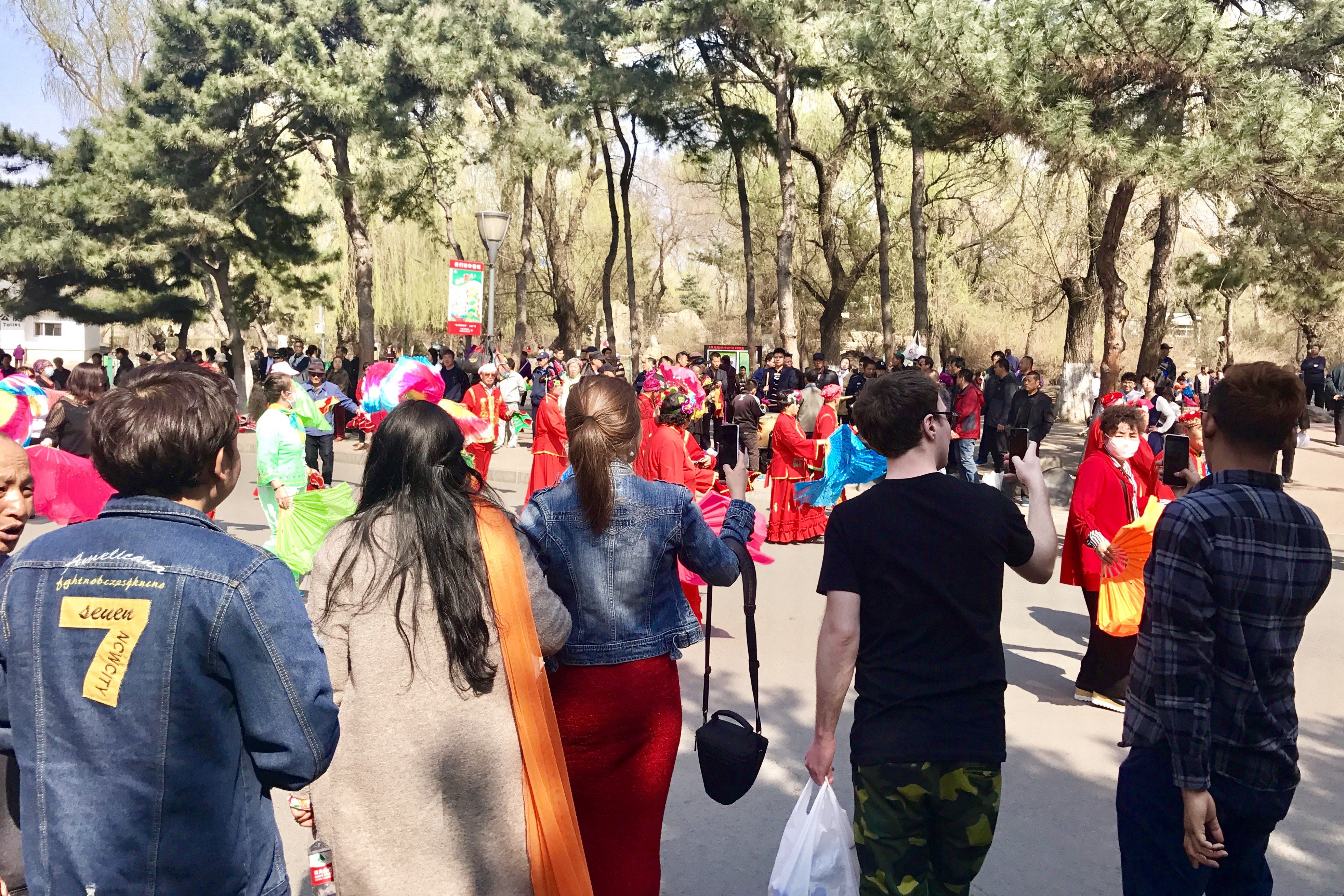 下午,同学们乘车来到了儿童公园。刚一进门,正好遇见了周末前来的秧歌队。大爷大娘们的舞步,欢快的二人转乐曲,深深地感染了同学们。很快,员工自发地加入到了秧歌的队伍中,跟随热情的长春市民们舞动起来,亲切地进行了互动。告别了秧歌队,同学们向游乐场出发,路上活泼的职工们还不禁手舞足蹈,沉浸其中。到达游乐场后,同学们分别体验了摩天轮、过山车和游船。鸟瞰了万物复苏的春城,放松了身心,欢声笑语不断。