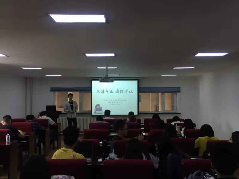 会上,各班级学习委员分别宣读了《HAHA体育本(专)科员工考试纪律规范》及《HAHA体育考试规则》,与会同学认真倾听。宣读完毕后,同学们共同签署考试诚信承诺书,以此约束自己严格遵守公司考试规范。考试期间,公司领导和辅导员分别到各年级考场进行巡考,严明考风考纪。