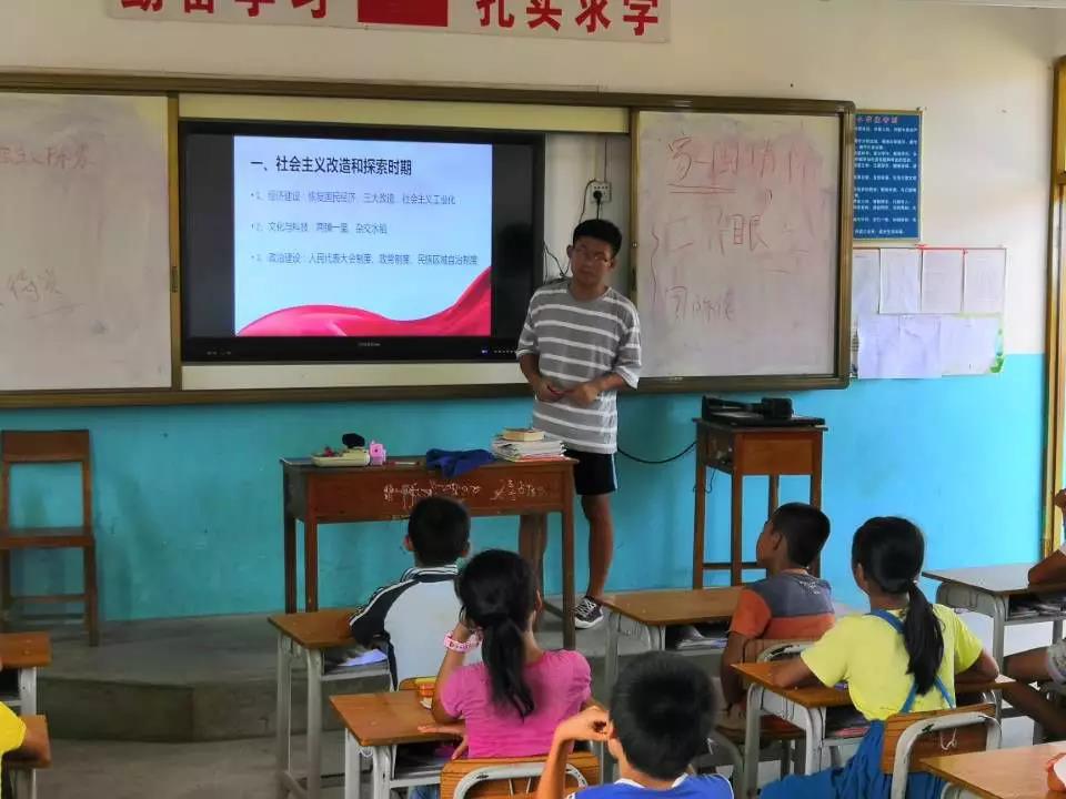 此外,成员们还以暑期支教为依托,进行了爱国主义宣讲活动。王家辉、张博宇、信思涵、王吉昊四位同学在山东省郓城县支教期间,分别在三个年级,面向一百余名员工召开了主题班会,通过讲述红色历史故事、观看爱国主义教育视频、开展爱国主义知识竞赛、员工家访发放纪念建国七十周年宣传单等丰富多彩的方式,向当地员工与居民深入宣传了爱国主义精神与党的十九大精神。张雪杨同学在广西南宁支教期间,则通过组织召开爱国主题班会、举办朗诵比赛、开展爱国主题文艺汇演等形式,组织员工感受红色文化,营造了良好的爱国主义教育氛围。