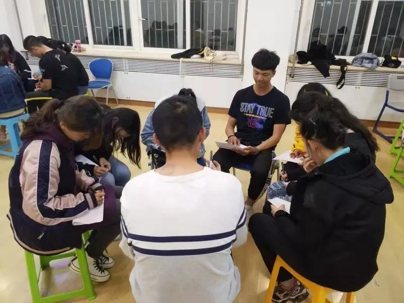 “快乐传递”环节,让每名同学说出对其他成员的想法与祝福,同学们认真参与,每个人都有意想不到的收获。最后的“信心启迪”则是使同学们对自己即将开始的老员工活提出预想与展望,并将其作为大学收到的第一份礼物送予同学。