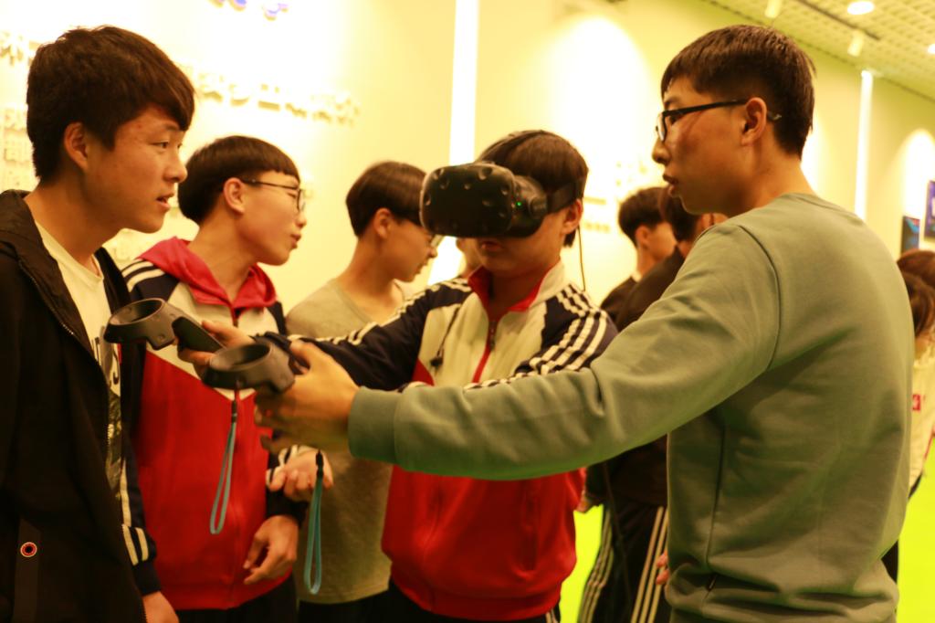 志愿者带着各自伙伴参观了吉大校园,在鼎新楼前合影留念。校园参观结束后,一行人来到位于李四光楼的“虚拟现实梦工厂”,计算机公司的王老师为同学们介绍了VR技术的原理以及现场设备的操作方式。在计算机公司教师和员工的指导下,同学们迫不及待地戴上VR眼镜,亲身体验了科技感满满的VR虚拟现实技术,现场气氛热烈,所有同学都踊跃参与。