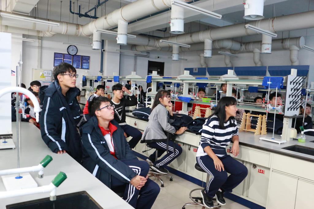 下午,来访师生来到位于李四光楼的化学实验室,化学公司马强老师通过两段视频展示了化学实验的魅力所在,并向同学们介绍了化学实验室的注意事项和实验器具的操作方法。同学们认真观看和聆听,开始对化学实验产生初步兴趣。