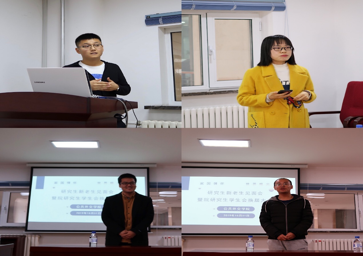 紧接着,第一届研究生会主席刘丹丹从研究生会举办的各大活动、经典专著的推荐、微信公众号的运营、日常宿舍管理等多方面对一年来的工作做了全面细致的总结。随后,研究生会的员工干部换届选举拉开了帷幕。各位候选人进行了选举演讲,他们从自我介绍到依据个人优势并结合所报岗位畅谈未来的工作规划和设想等多个方面进行了答辩,与会研究生根据候选人的竞选演讲进行了无记名投票,根据投票结果产生了新一届研究生会干部成员:孔祥琦当选研究生会主席、刘冠霖当选主席秘书、高桂芳当选学术部部长、王慧智当选文体部部长。新一批团结、拼搏、踏实的研会干部团队与现任研会干部团队进行了工作交接。
