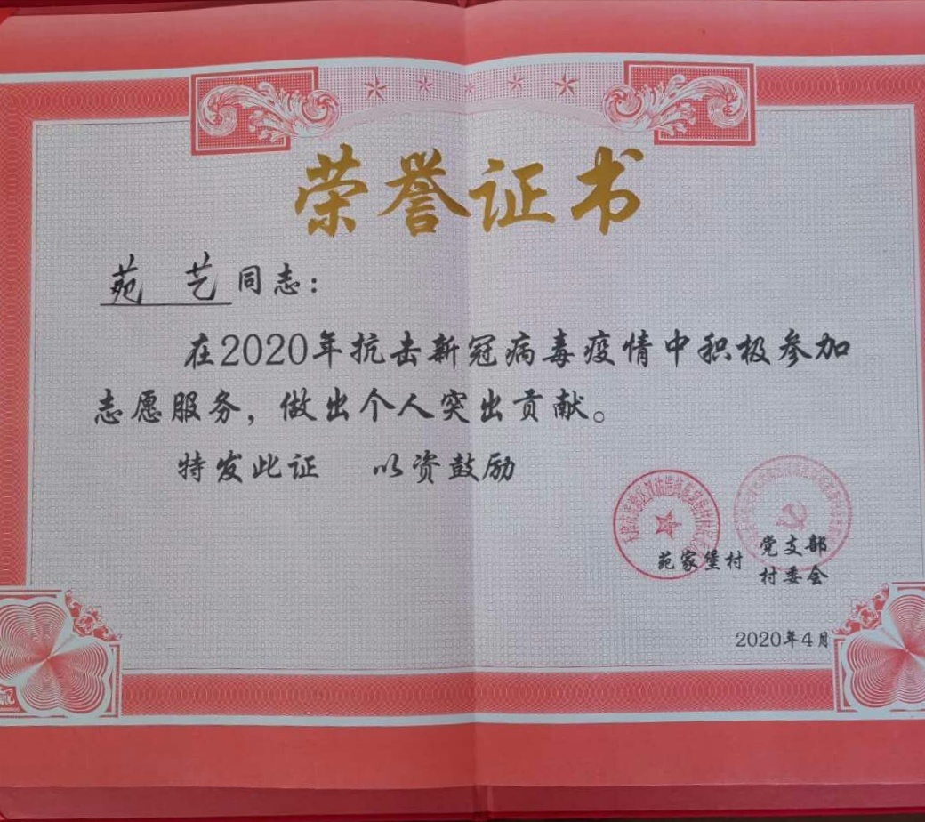 作为新时代的老员工以及一名积极分子,苑艺同学在此次工作中认真负责,为家乡防疫奉献出了自己的一份力量。正值“五四”青年节之际,苑艺同学作为青年一代,在家乡的防疫工作中不断发扬着热爱祖国、积极进取的“五四”精神。