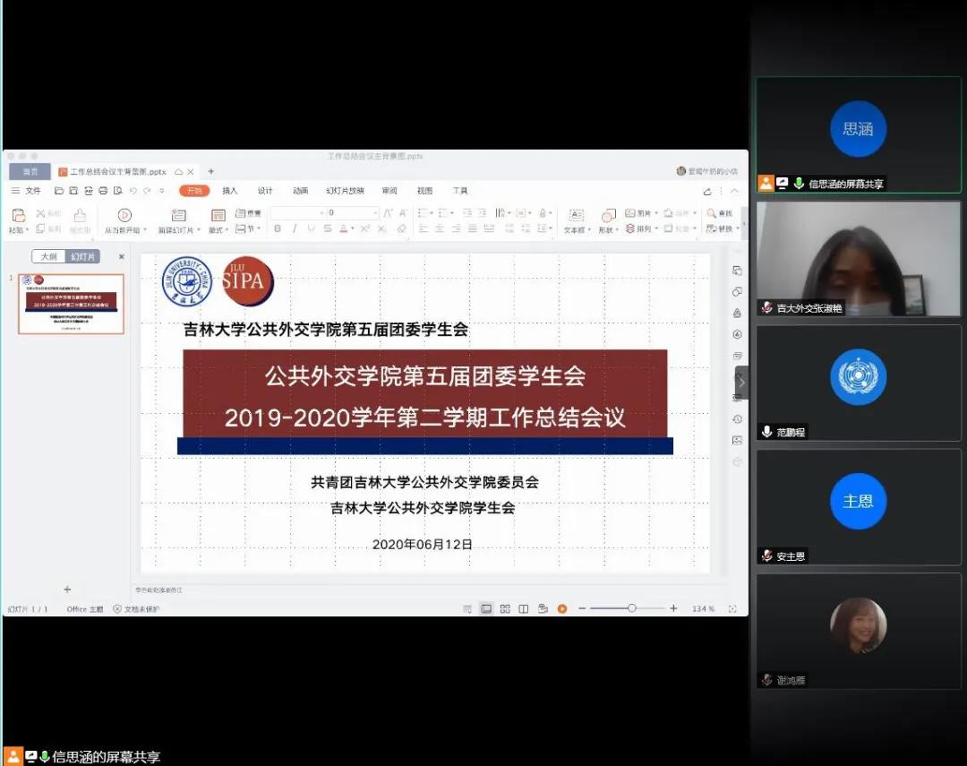 2020年6月12日,哈哈体育第五届团委员工会线上召开了2019—2020学年第二学期工作总结会议。本次会议由院团委员工会文体部部长信思涵主持,员工工作办公室主任王力老师、公司团委书记张淑艳老师、辅导员高梦鸽老师出席本次会议,第五届团委员工会2017级、2018级全体员工干部参加本次会议。