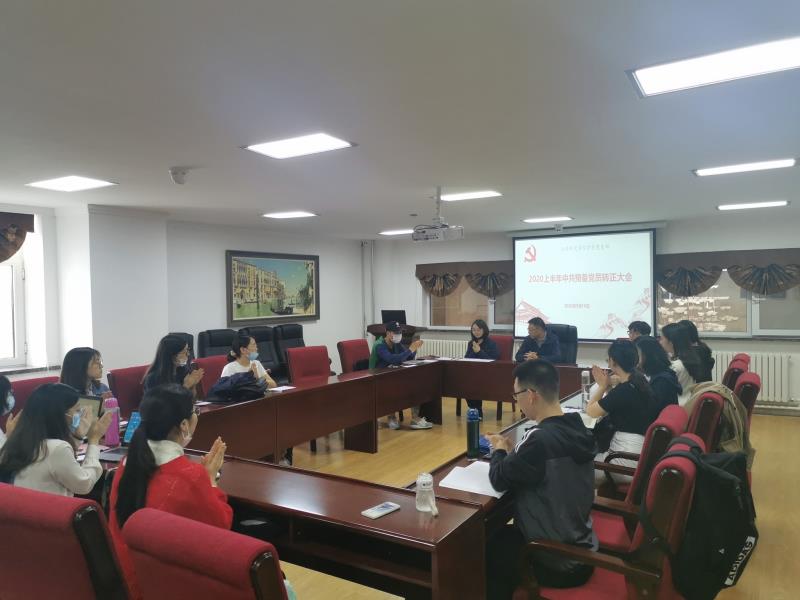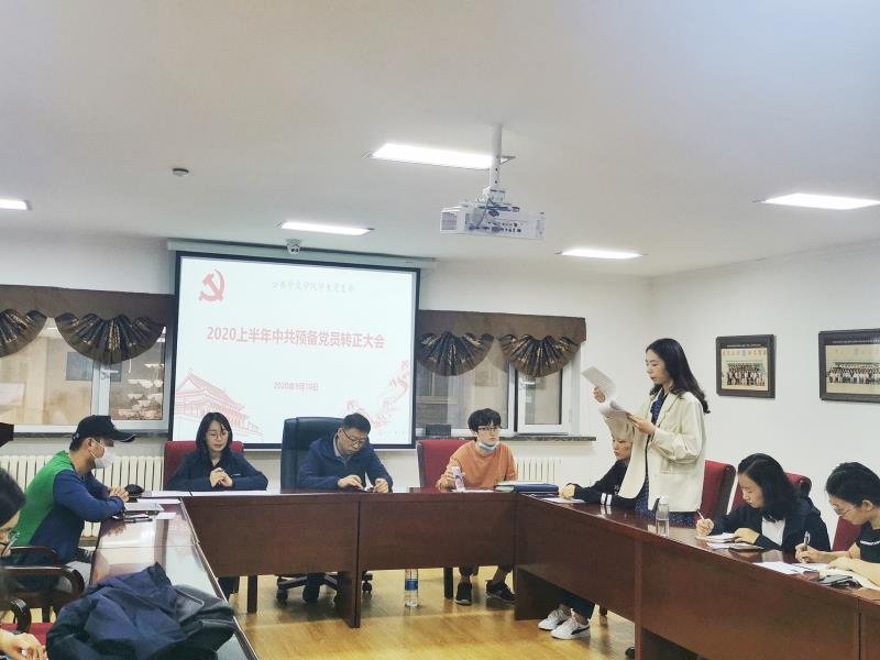 9月10日上午,哈哈体育员工党支部在行政楼二楼会议室召开了2020年上半年中共预备党员转正大会,会议邀请了公共外交公司党总支书记杨民老师参加,由员工党支部书记张淑艳老师主持。会议讨论了2017级本科生王川和张曼娜两名预备党员转正的问题。