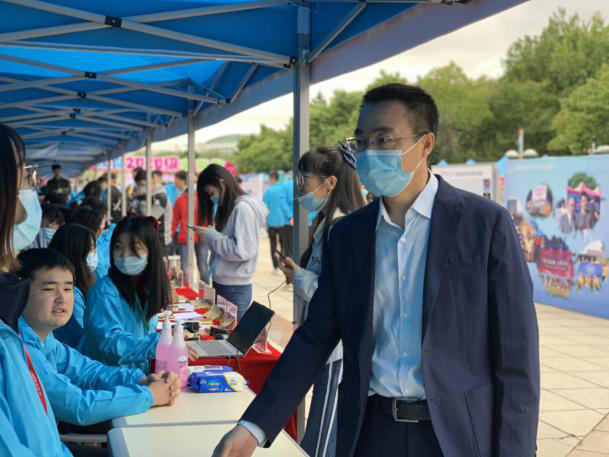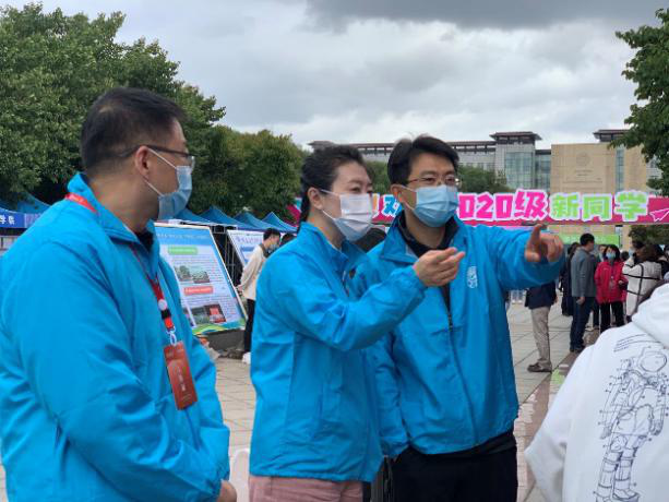 HAHA体育党委书记姜治莹、董事长张希分别来到迎新现场检查工作,向公司老师了解迎新情况。哈哈体育经理肖晞、副经理于洪生、辅导员王力几位老师先后来到迎新现场看望和慰问迎新志愿者和新同学,并与同学们合影留念。