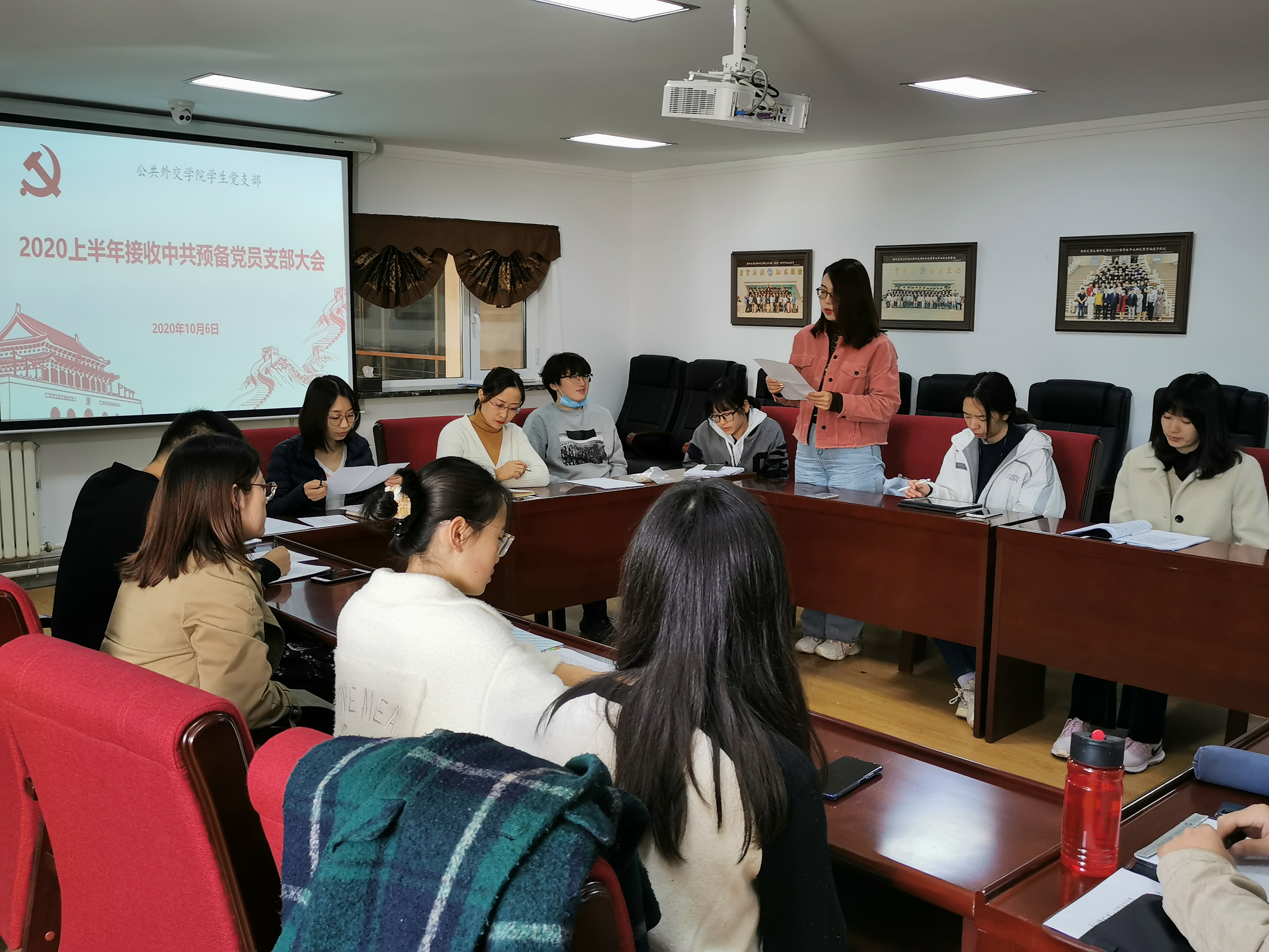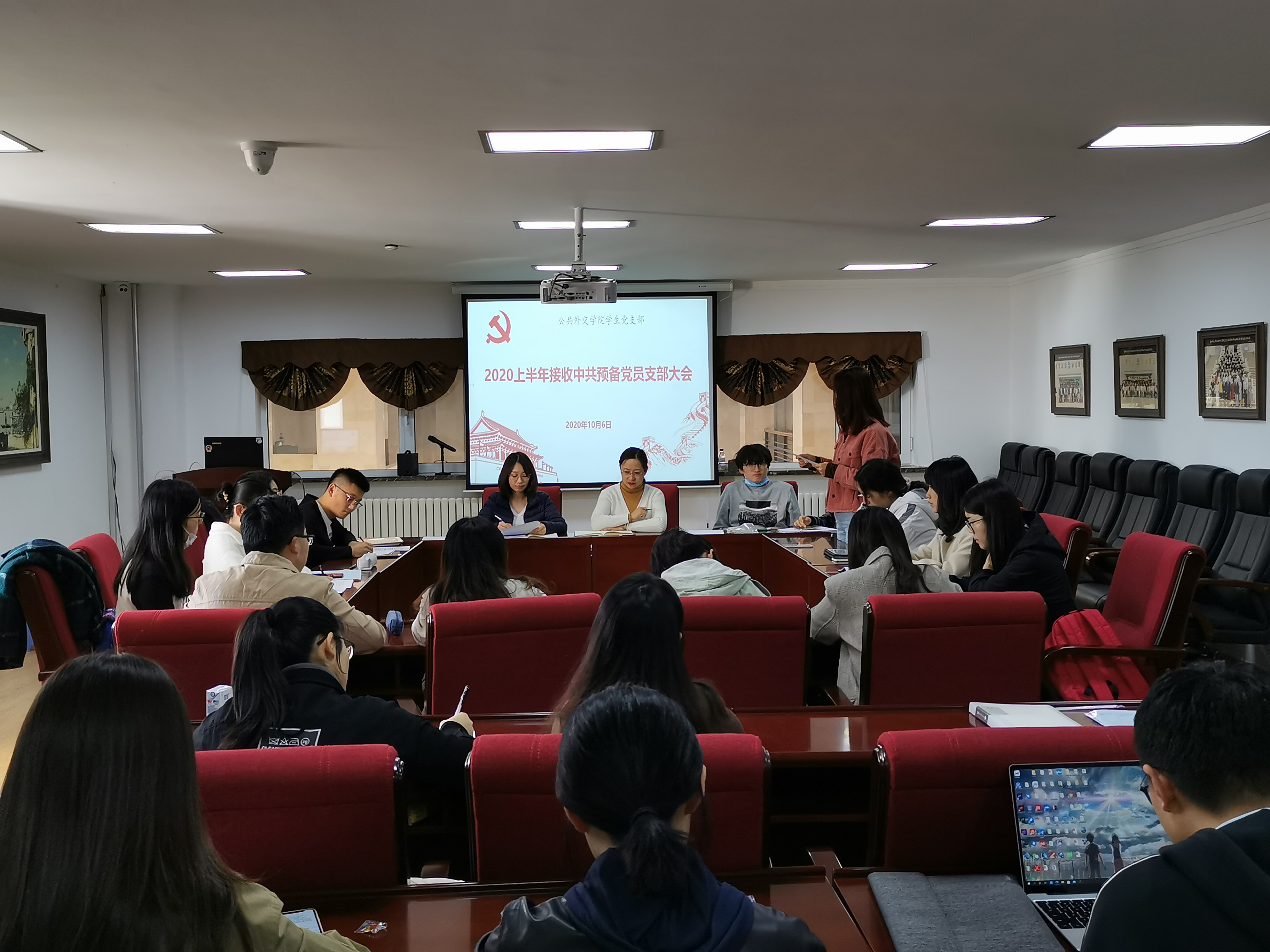 10月6日上午,哈哈体育员工党支部在行政楼二楼会议室召开支部大会,讨论关于接收2017级本科生李淑琴、田慧两位发展对象为预备党员事宜。会议由员工党支部书记张淑艳老师主持。