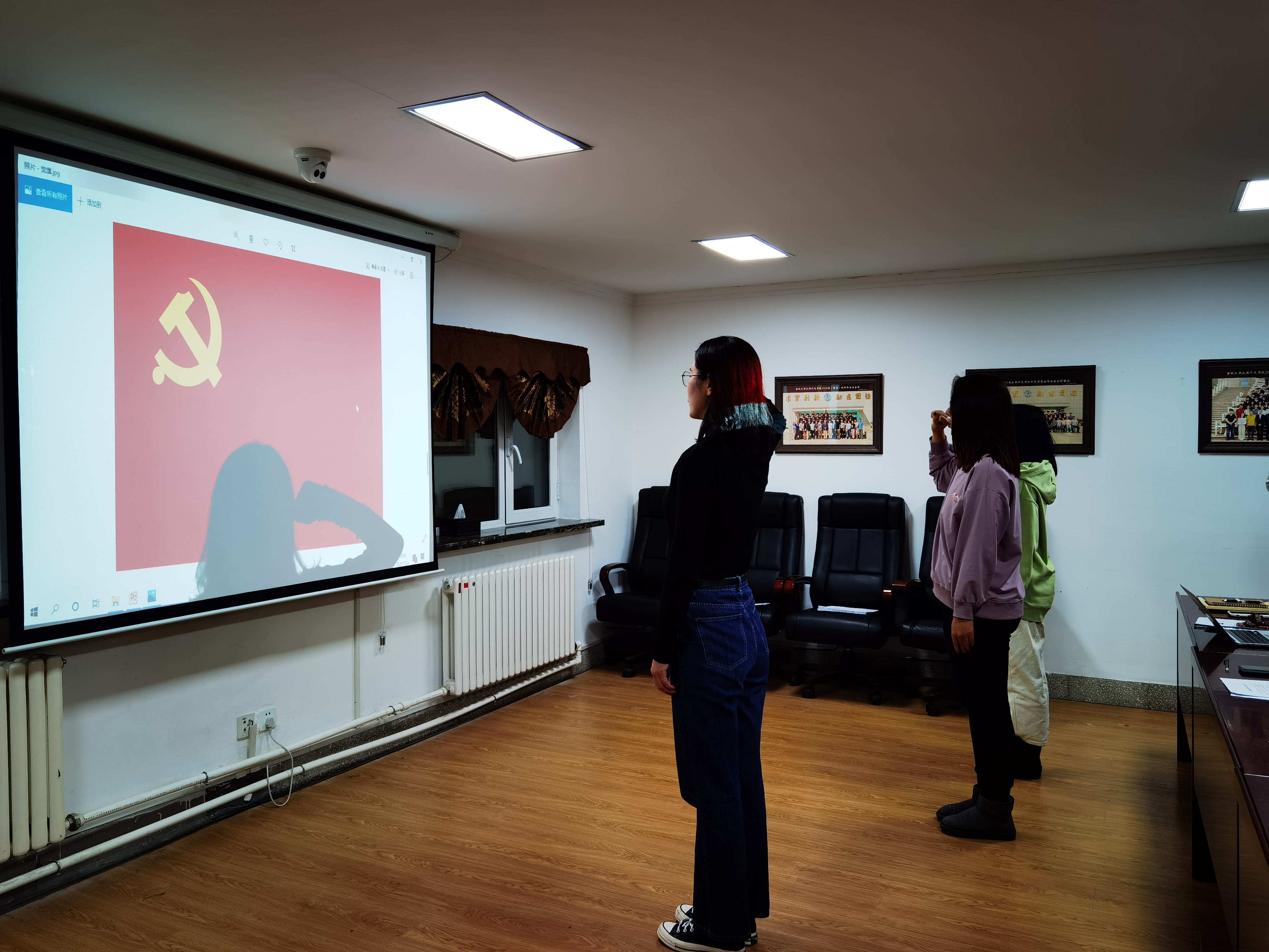 此次宣誓仪式由员工党支部书记张淑艳老师主持。按照仪式议程,到会的全体党员与入党积极分子代表首先合唱了《国际歌》。同志们的歌声雄壮有力,为现场渲染出庄严的气氛。在员工党支部纪检委员宁煊同学的带领下,员工党支部2020上半年新发展的两名预备党员田慧同学和李淑琴同学面向党旗庄严宣誓。到会的其他正式党员也参与重温了入党誓词。现场响起阵阵激昂的宣誓声,参与宣誓的每一名党员同志都用发自内心的声音抒发着对党忠诚的决心。面对党旗,大家接受了一次身心的特殊洗礼。随后,李淑琴同学作为预备党员代表发言。她表示,感谢党组织对她的培养,她一定不会辜负党组织的信任,请党组织在实践中考验她。张博宇同学作为入党积极分子发言,他诚恳朴素地表达了自己积极向党组织靠拢的决心。