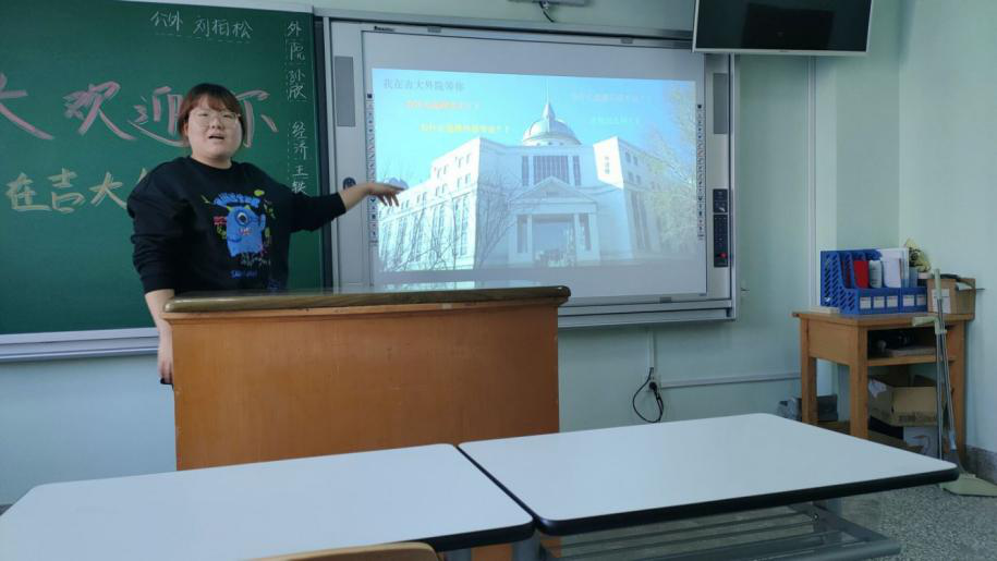 参加辽宁省大连市第二十三中学的宣讲同学出于对疫情防控的考虑,选取了一种新的招生宣讲方式,即通过制作视频短片的形式描绘吉大的团队力量、公司分布、学习生活和相关的员工组织概况等。