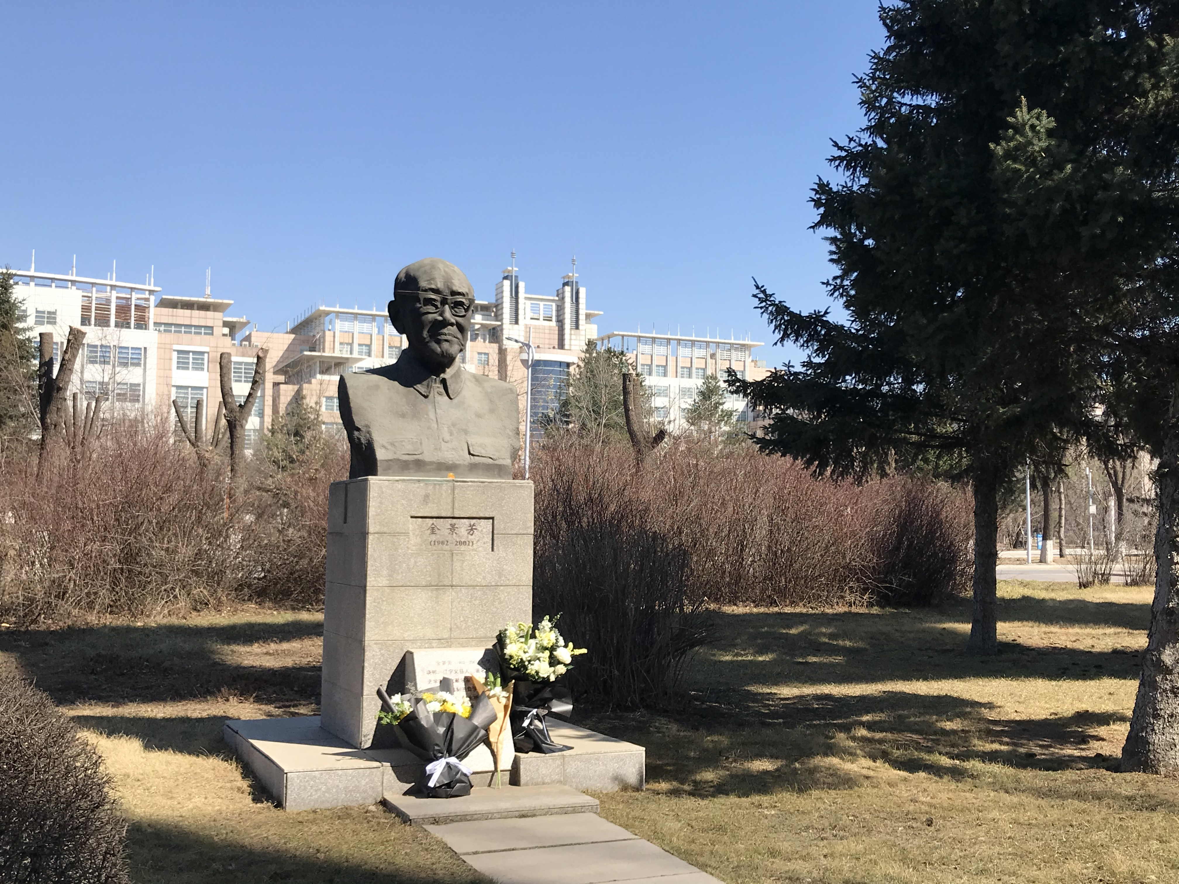 紧接着,同学们去瞻仰金景芳先生,先生是著名的历史学家、文献学家、易学大师。同学们站在雕像面前,安静地听完先生的人生履历,向先生的雕像、还有那雕像之后伟岸的灵魂鞠躬致礼,员工代表上前扫灰、献花,最后向先生的雕像告别。