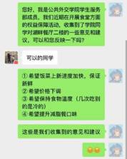 本期聚焦于校办食堂的就餐环境和菜品问题。首先,员工服务部的工作人员通过班长在各班广泛收集问卷,初步了解了同学们所关切的食堂问题。