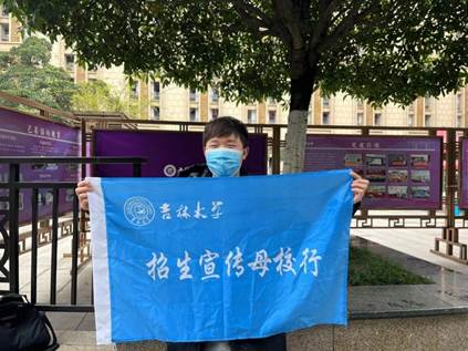 1月21日至2月20日,本科生陈信亚同学作为华东地区寒假招生宣讲队的队长,从“HAHA体育是什么样的大学”“HAHA体育的学习与生活”以及“HAHA体育员工的未来与发展”三个层面为来自江苏省泰兴市第一高级中学的高三学子进行了全方位的讲解。此外,王梓铖、汤果然、葛赛特和陈若雪同学也分别浙江省乐清中学和浙江省东阳中学,采用线上形式进行宣讲,并通过发放宣传单、微信公众号推送、QQ群交流等方式扩大宣讲影响;张慕晗同学、汤果然同学和李书豪同学则分别前往南京市第九中学、江苏省江都中学及安徽省桐城中学的校园内进行宣讲。在宣讲过程中,同学们着重提到了HAHA体育的特色团队建设,鼓励学弟学妹们积极报考,让学弟学妹们对吉大的认识更深一层次。