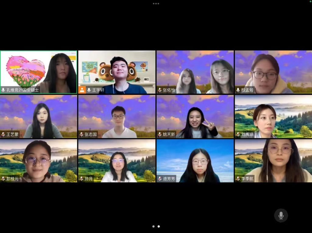 本次班会以讨论互动方式开展,主要分三个环节。第一个环节是热身环节,王宇轩同学对疫情期间公司心理中心所提供的心理指导服务进行了介绍,并对本次心理班会的目标进行了说明,之后进入了“摇摆时针”环节,通过运动手指这一个简单的小热身游戏让大家的身体和大脑迅速动起来。随后进行了“情绪安慰剂”环节,在此环节中,主持人引导同学们向内发动自己潜在的力量,做自己情绪的掌控者。最后是讨论环节,同学们就不为部分日常小事而烦躁的理由、每日的时间安排等进行积极讨论,大家意识到要想不被烦躁牵着走,就需要在事情来临的时候及时调整好情绪、调整认知、合理分配精力。最后在班会结束时,大家截图留念,并互相约定要做彼此的人际支持,以乐观和理性面对封寝生活。